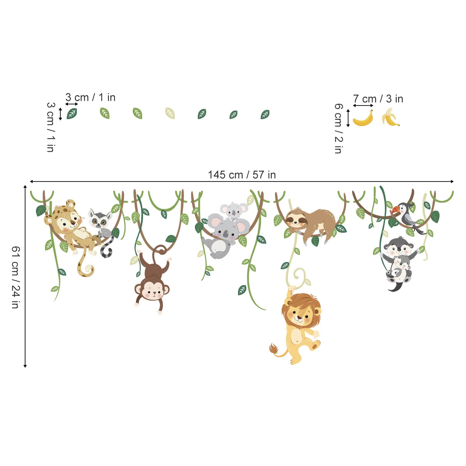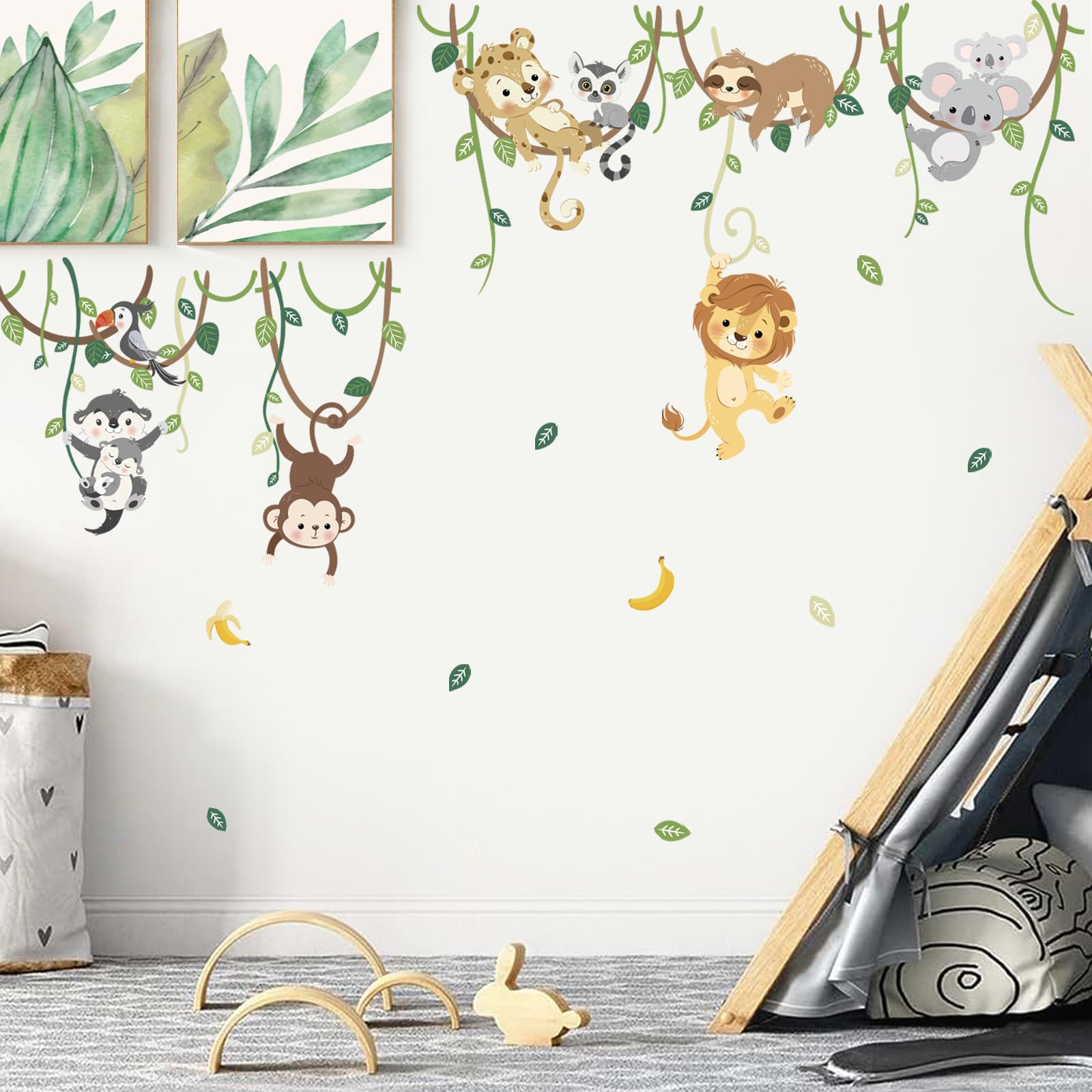decalmile Wandtattoo Dschungel Tiere Reben Wandsticker Tiere Löwe Affe Koala Wandsticker Kinderzimmer Babyzimmer Schlafzimmer Wanddeko