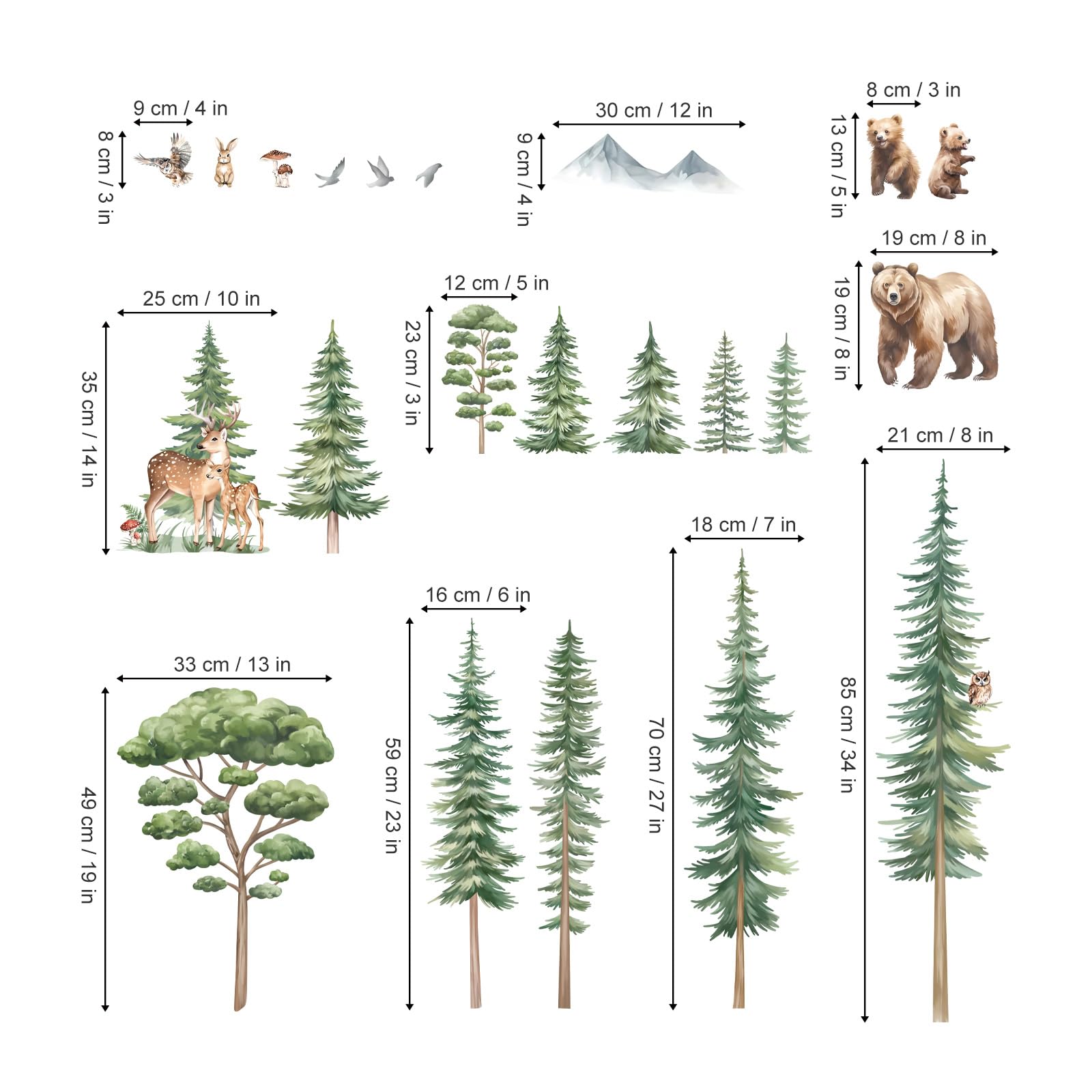 decalmile Wandtattoo Baum Gross Kiefer Wandaufkleber Waldtiere Baum Bär Hirsch Wandsticker Kinderzimmer Wohnzimmer Schlafzimmer Wanddeko