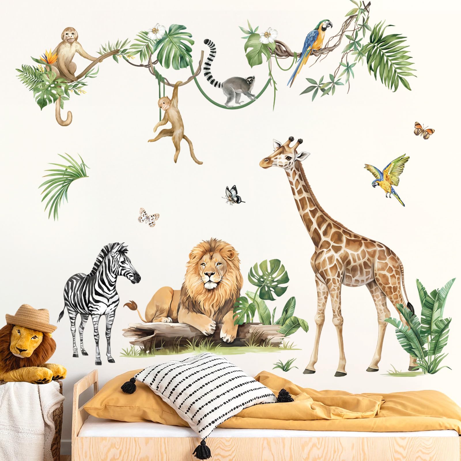 decalmile Wandtattoo Dschungel Tiere Reben Wandaufkleber Giraffe Löwe Zebra Safari Blätter Wandsticker Kinderzimmer Babyzimmer Schlafzimmer Wanddeko (XXL)