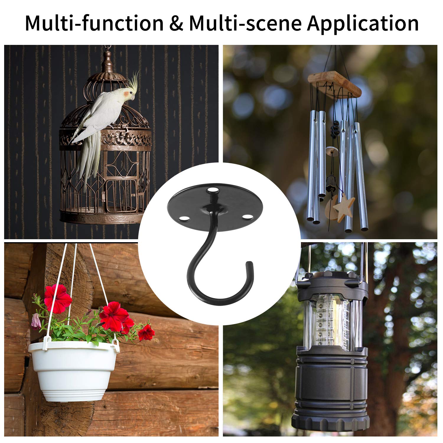 Deckenhaken für hängende Pflanzen – Metall-Pflanzenhalterung, Eisen-Wandhalterung, Laternen, Windspiele, Pflanzgefässe, Outdoor-Dekorationshaken (2er-Pack) (schwarz)