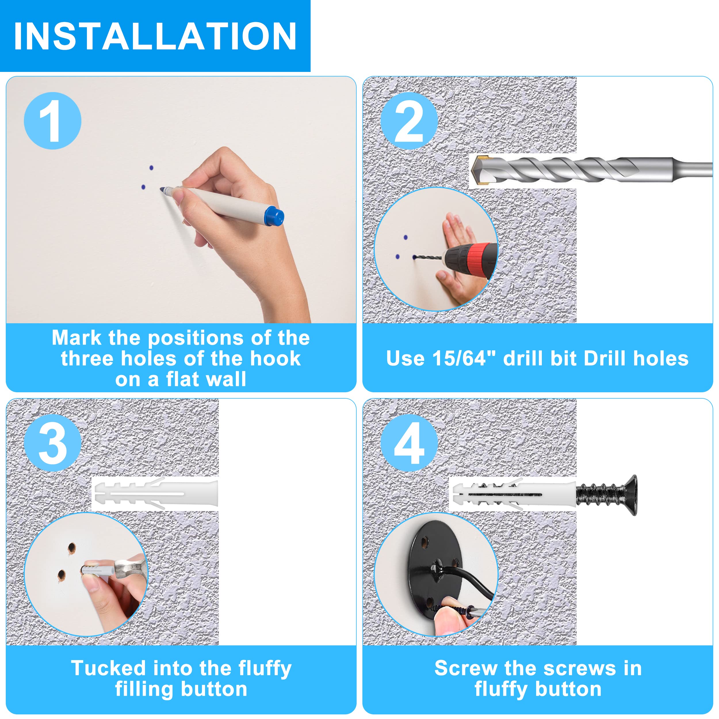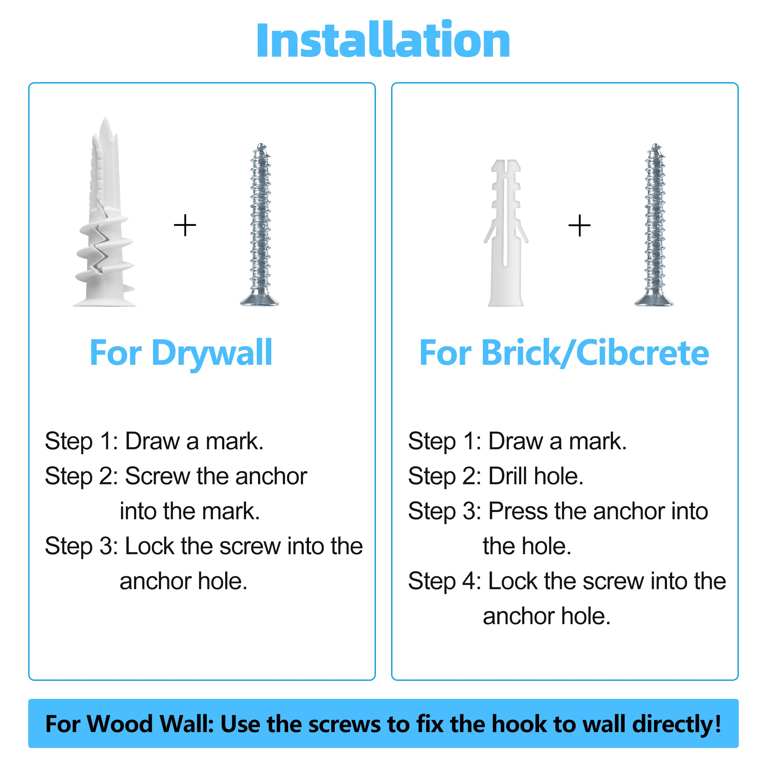 Das professionelle Design hat eine gute Tragkraft, damit hängende Gegenstände stabil und sicher befestigt sind. Jeder Haken kann bis zu 45 kg zu tragen.