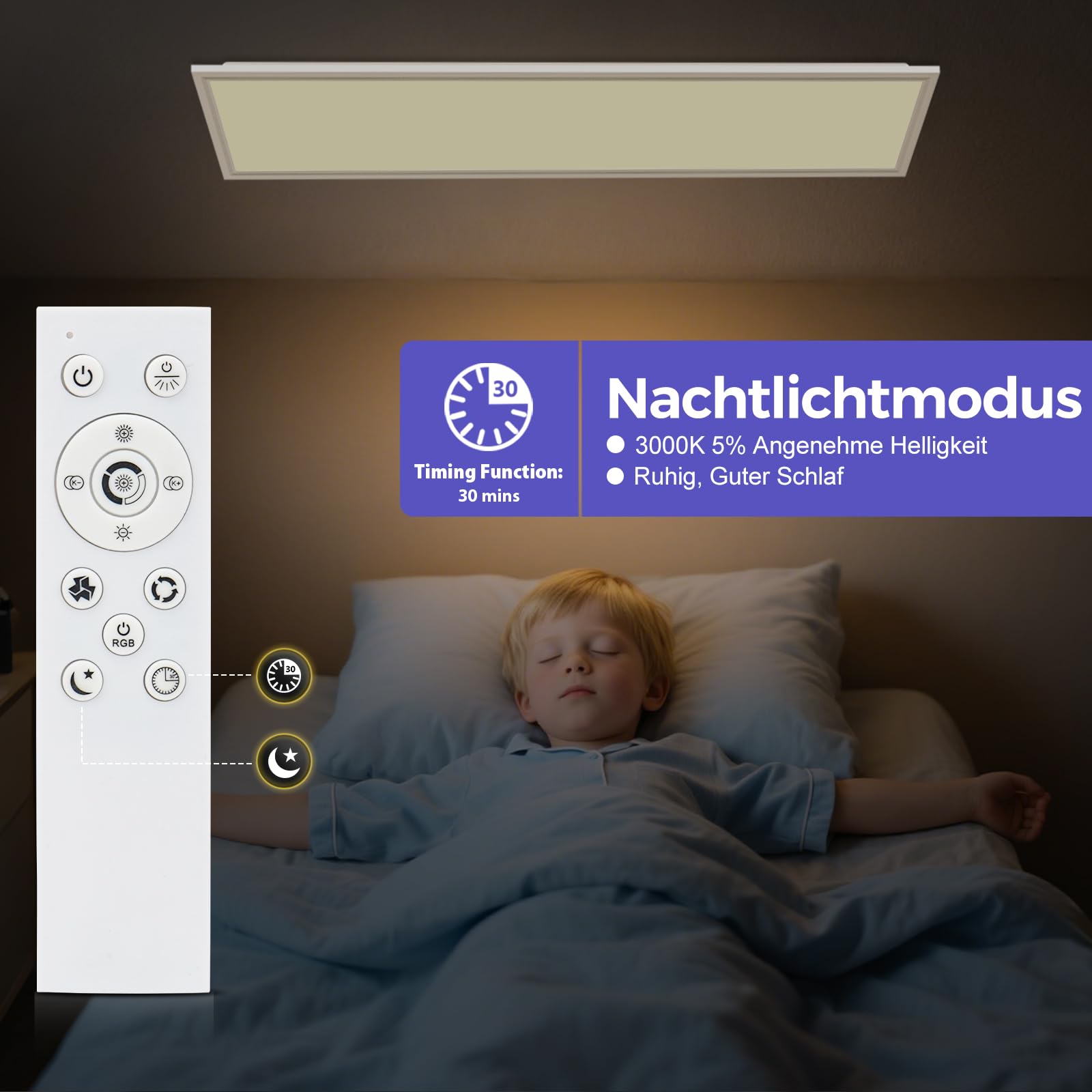 30-Minuten-Timer-Funktion mit Nachtlichtmodus, begleitet Sie jede Nacht in einen ruhigen Schlaf.