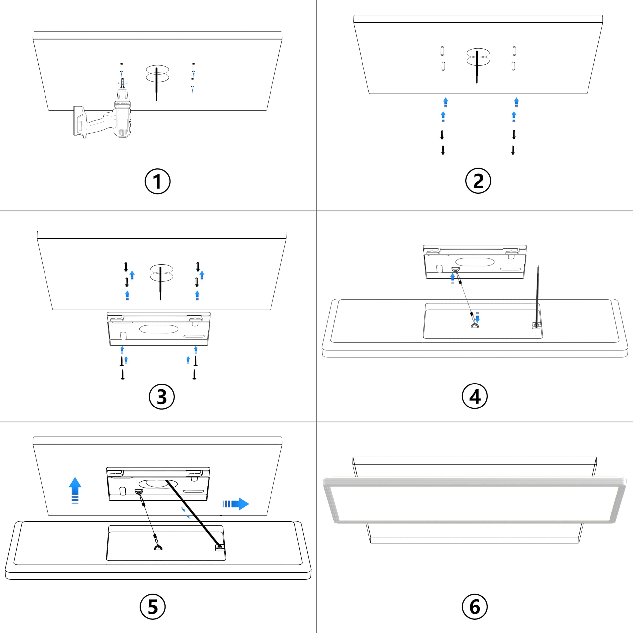 Brauchen keine Hilfe vom Elektriker. Es wird auch sehr bequem für eine Person die LED Deckenlampen mit mitgelieferten Zubehörteilen unabhängig zu installieren. Die Montagezubehör sind im Lieferumfang enthalten.