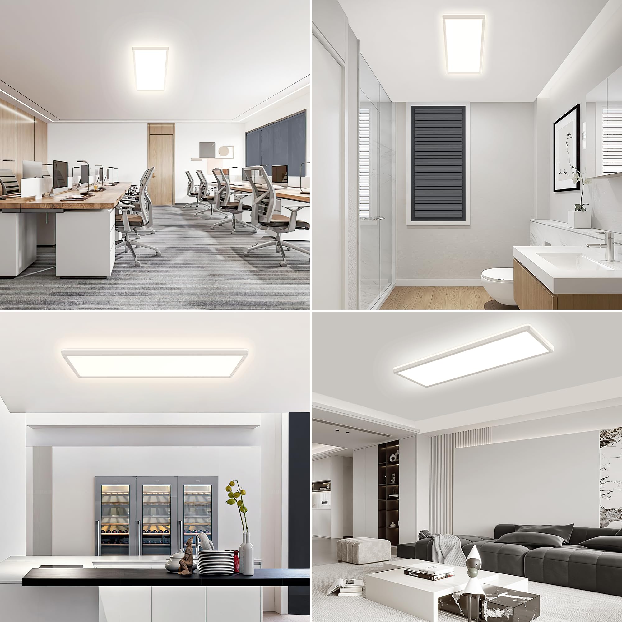 Die Flach rechteckige Deckenleuchte eignet sich ideal für die Innenbeleuchtung von Wohnzimmern, Badezimmer, Küchen, Schlafzimmern, Kaufhäusern, Esszimmern, Lagerhallen, Keller, Konferenzräumen, Veranden, Garagen, auch für die Feuchträumen.