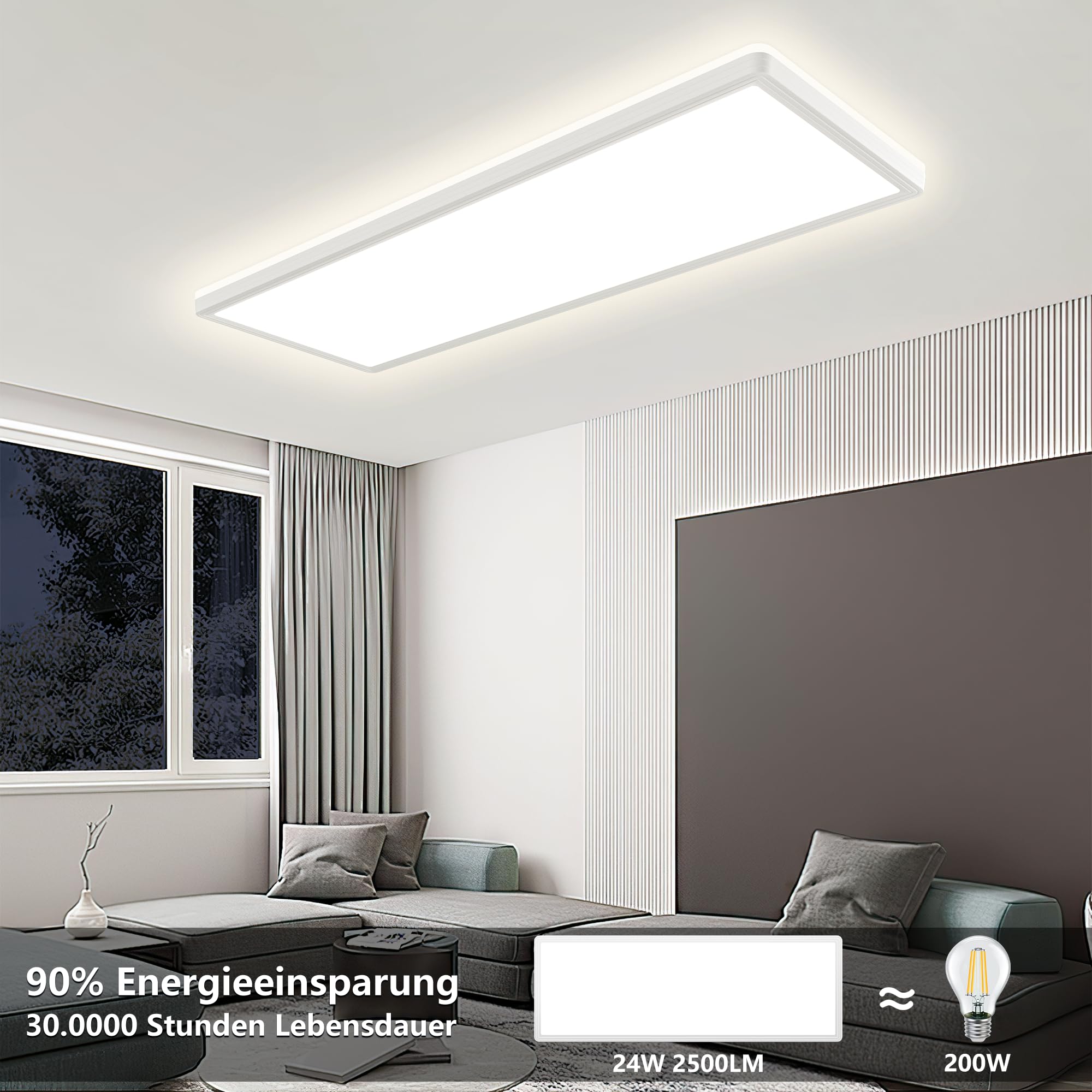 Diese LED Deckenlampe rechteckig mit 24W und 2500LM Lichtleistung kann Raum von 15 bis 20m² mit 4000K natürlich weiss Licht versorgen.