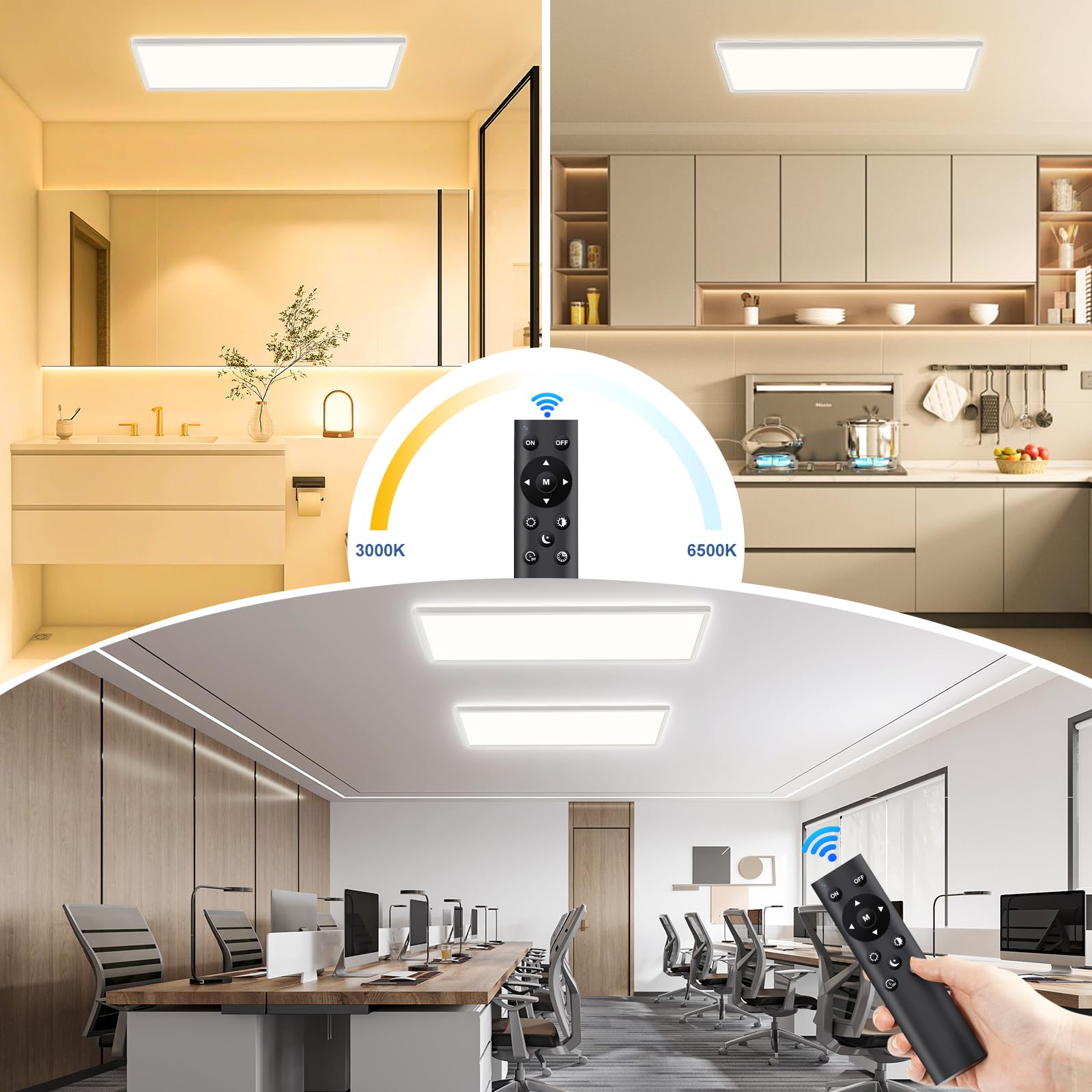 Die LED Deckenlampe rechteckig mit 24W und 2500LM Lichtleistung kann Raum von 15 bis 20m² mit 3000-6500K Licht versorgen.