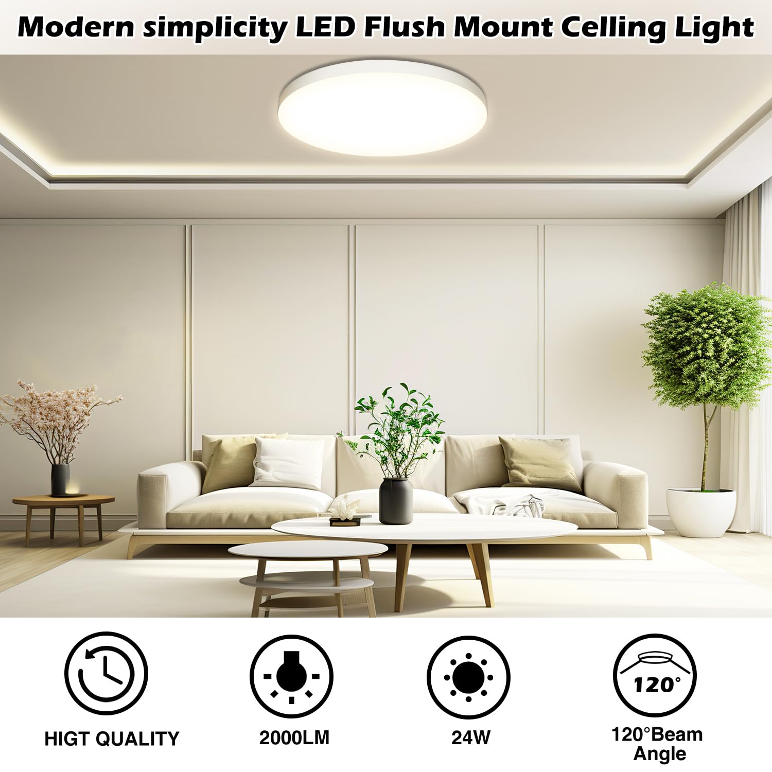 Diese LED-Deckenleuchte mit 24 W und 2000 Lumen entspricht einer herkömmlichen 174-W-Glühlampe und spart über 90 % Stromkosten. Sparen Sie Energie, sparen Sie Geld!