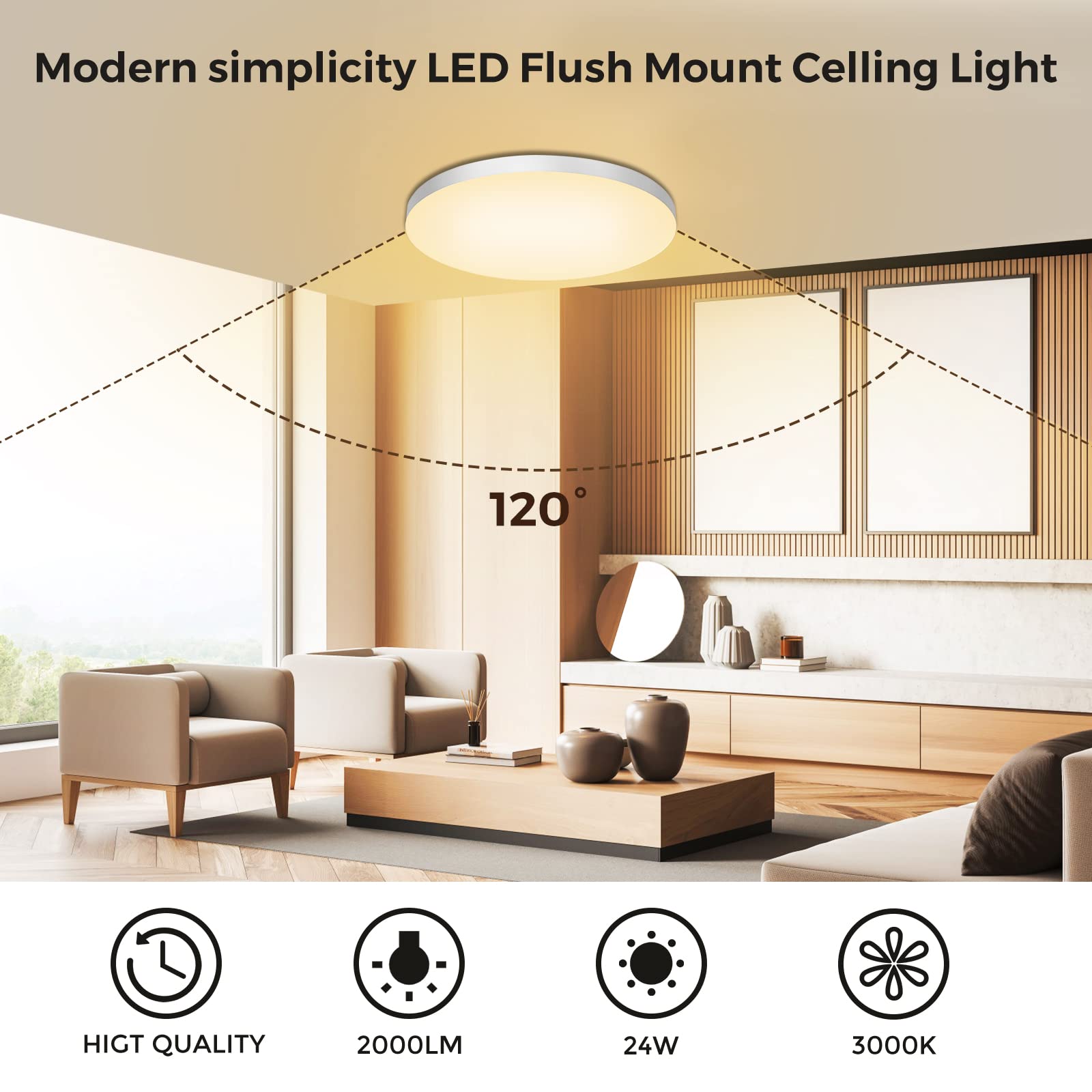 Diese LED-Deckenleuchte mit 24 W und 2000 Lumen entspricht einer herkömmlichen 174-W-Glühlampe und spart über 90 % Stromkosten. Sparen Sie Energie, sparen Sie Geld!