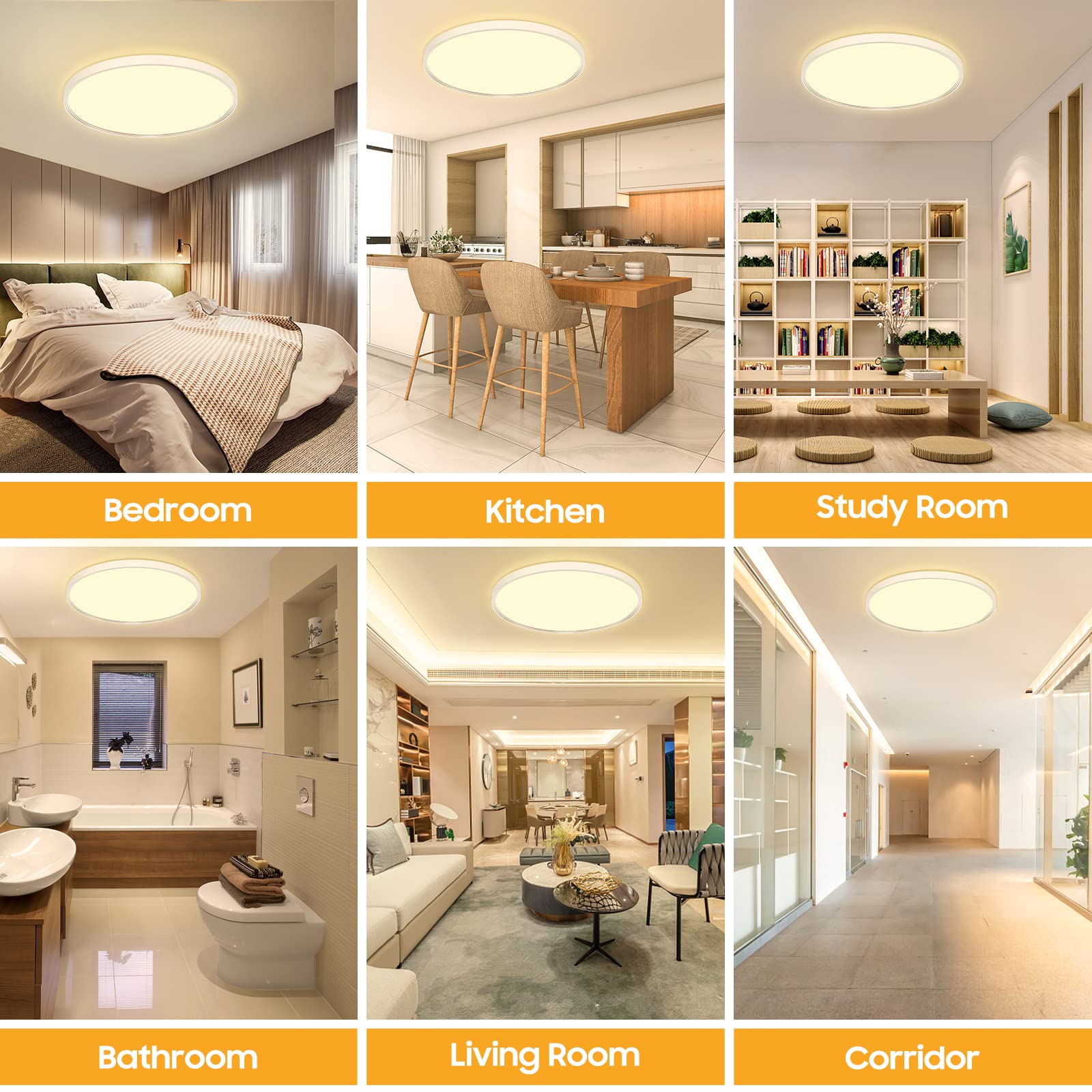 Das Kunststoffgehäuse der LED Deckenlampe aus hochwertigem Klasse ABS hat eine bessere Lichtdurchlässigkeit und Intensität als andere Deckenlampen. 3000K perfektes Warmweiss Licht,der Lichteffekt ist gleichmässig und hell.