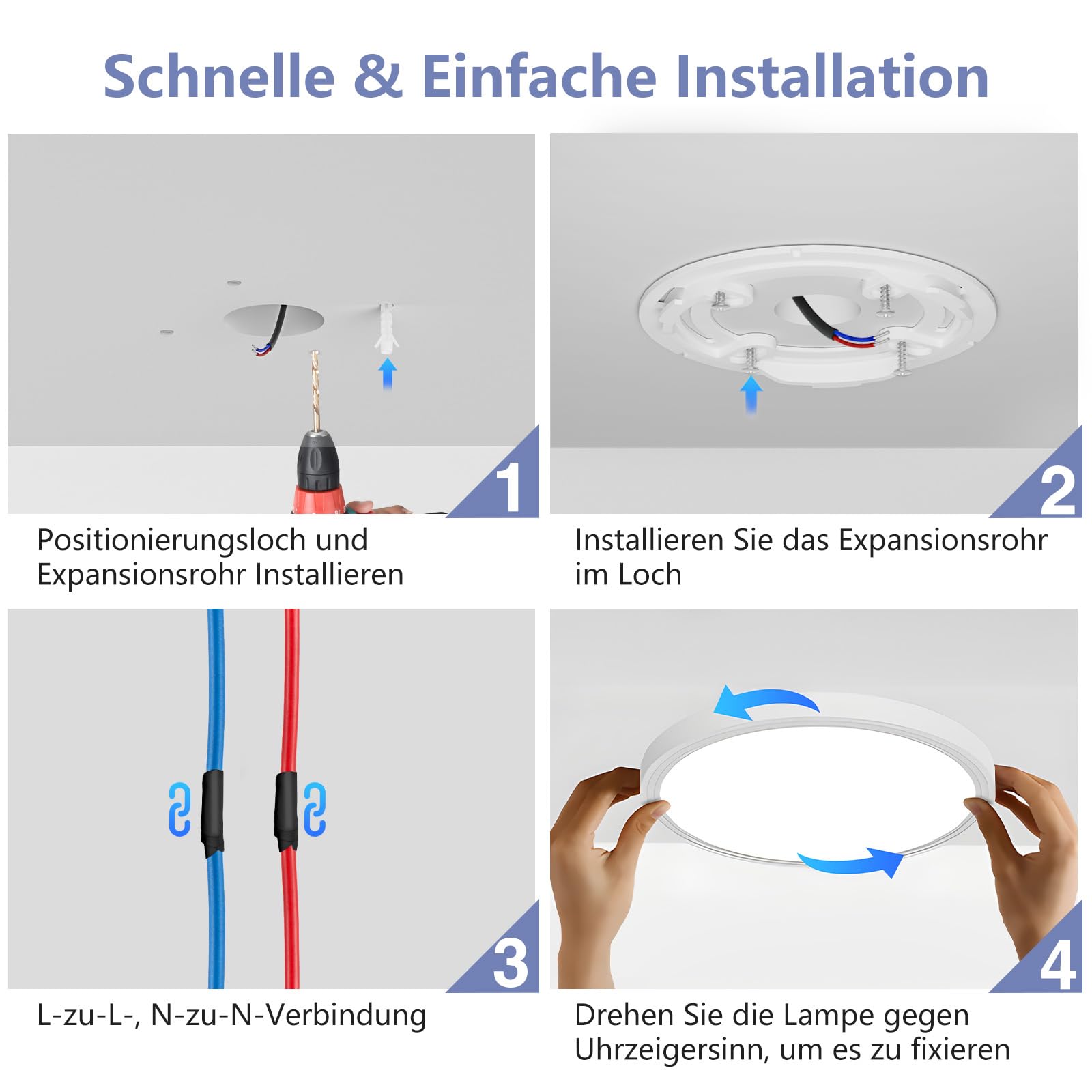 Diese LED Deckenlampe verhindert jegliches Risiko von Stromschlag,elektrischen Leckagen oder sogar potenziellen Katastrophen durch Kurzschluss,ist perfekt für Familien! Jetzt bestellen und 2 Jahre kostenlose Rücksendung erhalten!
