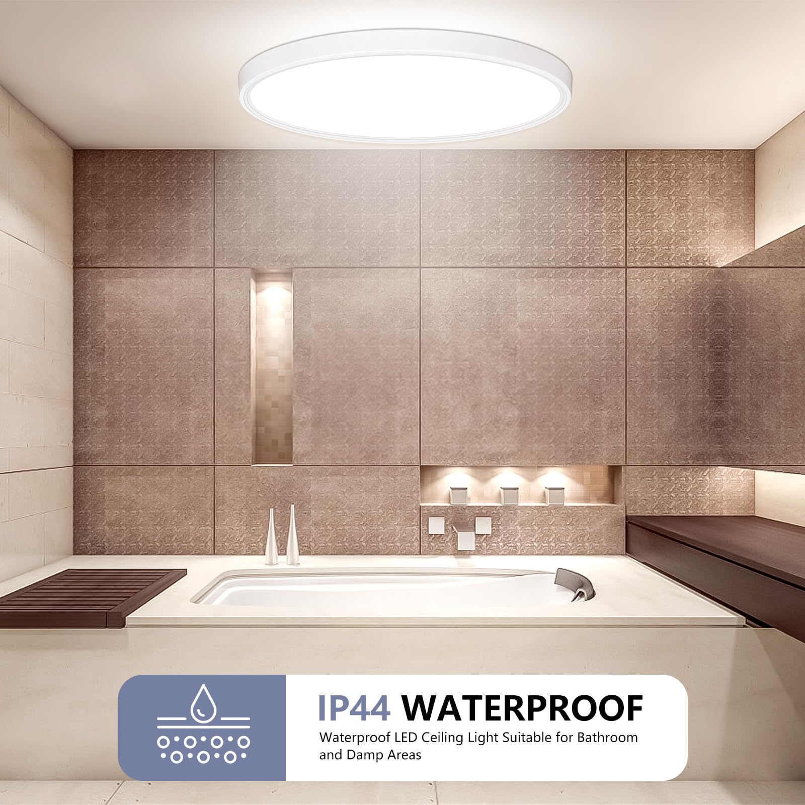 Deckenlampe LED Deckenleuchte Flach Rund - Weiss 18W 4000K 1600LM IP44 Modern Badezimmer LED Lampe Badlampe Decke Küchenlampe für Bad Flur Balkon Schlafzimmer Wohnzimmer Küche Keller Ultra Dünn Ø 223mm