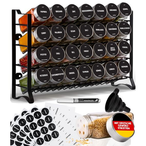 Deco haus® Gewürzregal Stehend & Wand [MIT 28 GLÄSERN & GEWÜRZETIKETTEN] - Gewürz Organizer - Gewürzregal Wand - Spice Rack Organizer - Gewürzständer Gewürzregale Hängend - Gewürzregale Schrank
