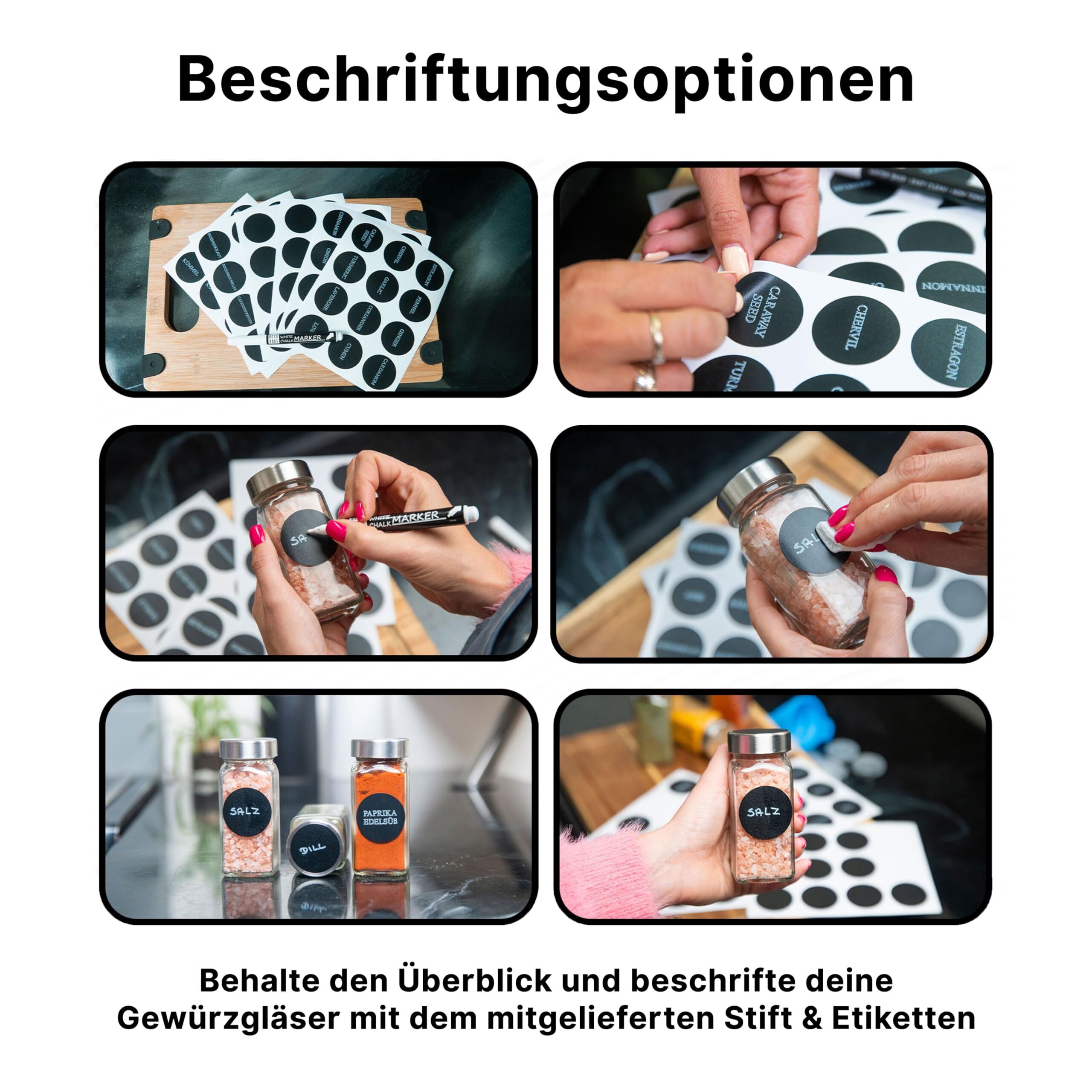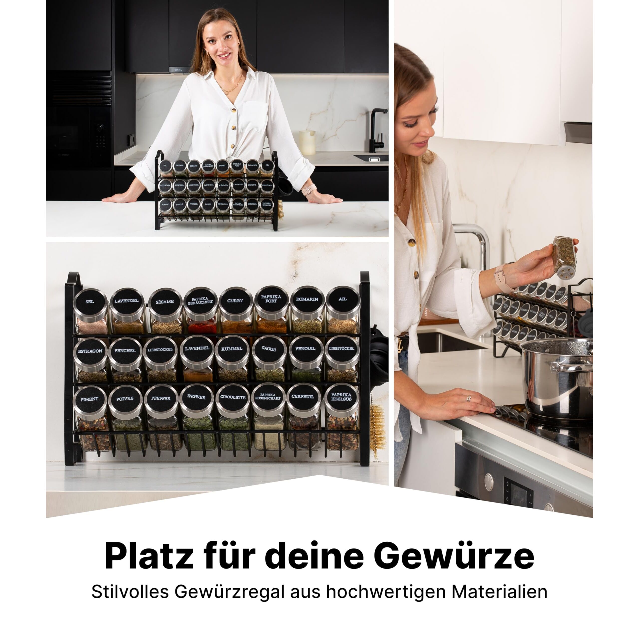 Deco haus® Gewürzregal Stehend & Wand [MIT GEWÜRZDOSEN & ETIKETTEN] - Spices Gewürz Organizer - Spice Rack - Gewürzständer - Gewürzregalsystem Hängend - Gewürzaufbewahrung - Gewürzgläser mit Regal