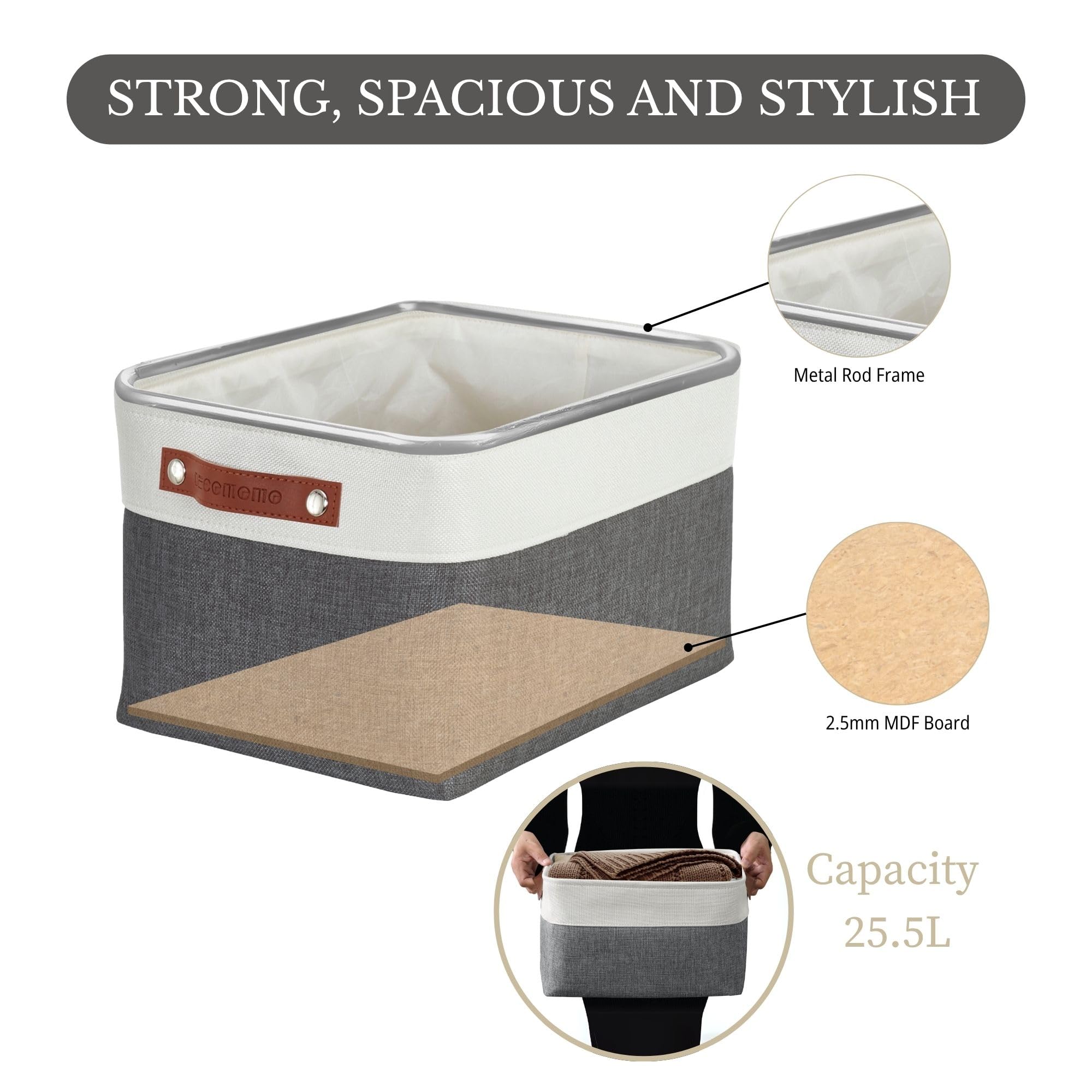 DECOMOMO faltbare Aufbewahrungskorb | robuster Stoffkorb mit Griffen für die Organisation von Regal, Kinderzimmer, Spielzeug, Schrank (Schiefergrau und Weiss, gross–3 Stück)