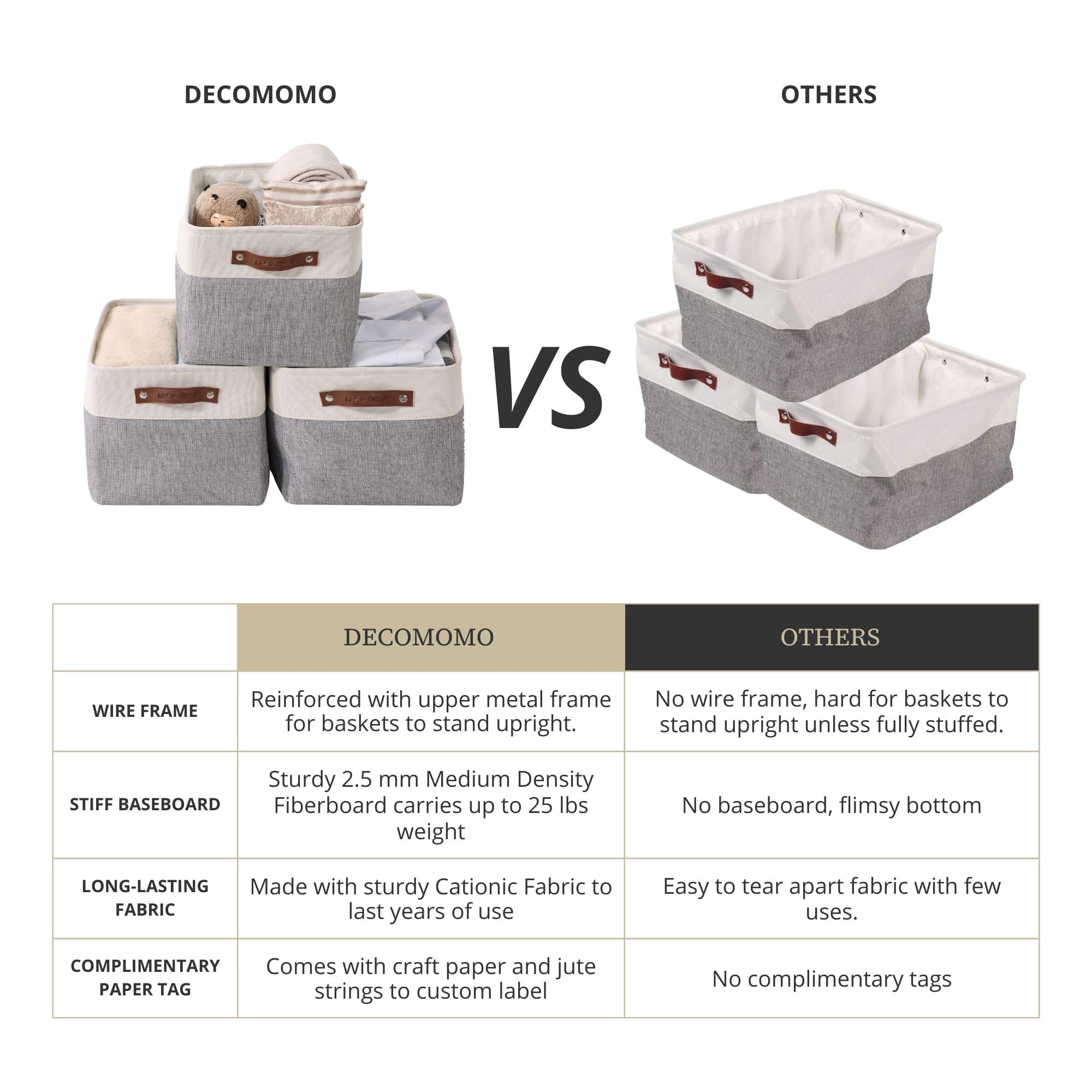 DECOMOMO Faltbarer Aufbewahrungsbehälter, neues Modell 2020, Organisieren und Reinigen erhält eine ganz neue Bedeutung mit den faltbaren Aufbewahrungsbehältern von DECOMOMO. Unsere faltbaren Aufbewahrungskörbe organisieren Dinge, damit sie leicht zu finden sind. Eine einfache und modische Lösung, um Ihr Zuhause oder Büro besser zu organisieren und aufzuräumen. Dies ist eine echte Mehrzweck-Organisationseinheit, die jeden Stil und jedes Dekor ergänzt. Mehrfach verwendbar: Passt zu jedem Zuhause, Büro und Raum; Perfekt für: Schlafzimmerschränke: Kleidung, Hüte, Gürtel usw.; Wohnzimmer: Zeitschriften, Bücher, Steuerungen, Fernbedienungen, Kerzen, DVDs, Brettspiele; Badezimmer: Taschentücher, Aufbewahrung, Kämme, Schönheitsbedarf, Make-up; Familienzimmer: Spielzeug, Decken, Spiele, Kleidung; Als Regal: Waschmittel, Reinigungsmittel; Allgemeine Aufbewahrung: Speisekammer, Bettwäsche und Handtücher, Aufbewahrungskorb für Lebensmittel im Auto und viele weitere praktische Verwendungen! Modisch und robust: Schickes und modisches Design, das zu Inneneinrichtungen in jedem Haushalt oder Büro passt. Beschriften Sie jeden Korb mit der mitgelieferten Juteschnur und Etikett mit unserem DIY-Set. Personalisieren Sie Ihren Korb mit einem Stil, der zu jeder Einrichtung passt. Erstellen Sie Ihre eigenen Etiketten für vollständige Personalisierung. Grösser als die meisten Körbe. Unserer Aufbewahrungsbehälter sind grosszügig geschnitten. Grösser als die meisten faltbaren Körbe, so dass Sie mehr bewegen und mehr verstauen können. Perfekte Geschenkidee: Als Einweihungsgeschenk oder für Studenten, die an der Uni wenig Platz haben. Unser faltbarer Aufbewahrungsbehälter passt zu Ihrer Dekoration und zu Ihrer Einrichtung. Material: kationischer Stoff aussen, sehr stabil, Leinen-Innenfutter. Masse: 38 x 28 x 24 cm (L x B x H). Menge: 3 Stück.