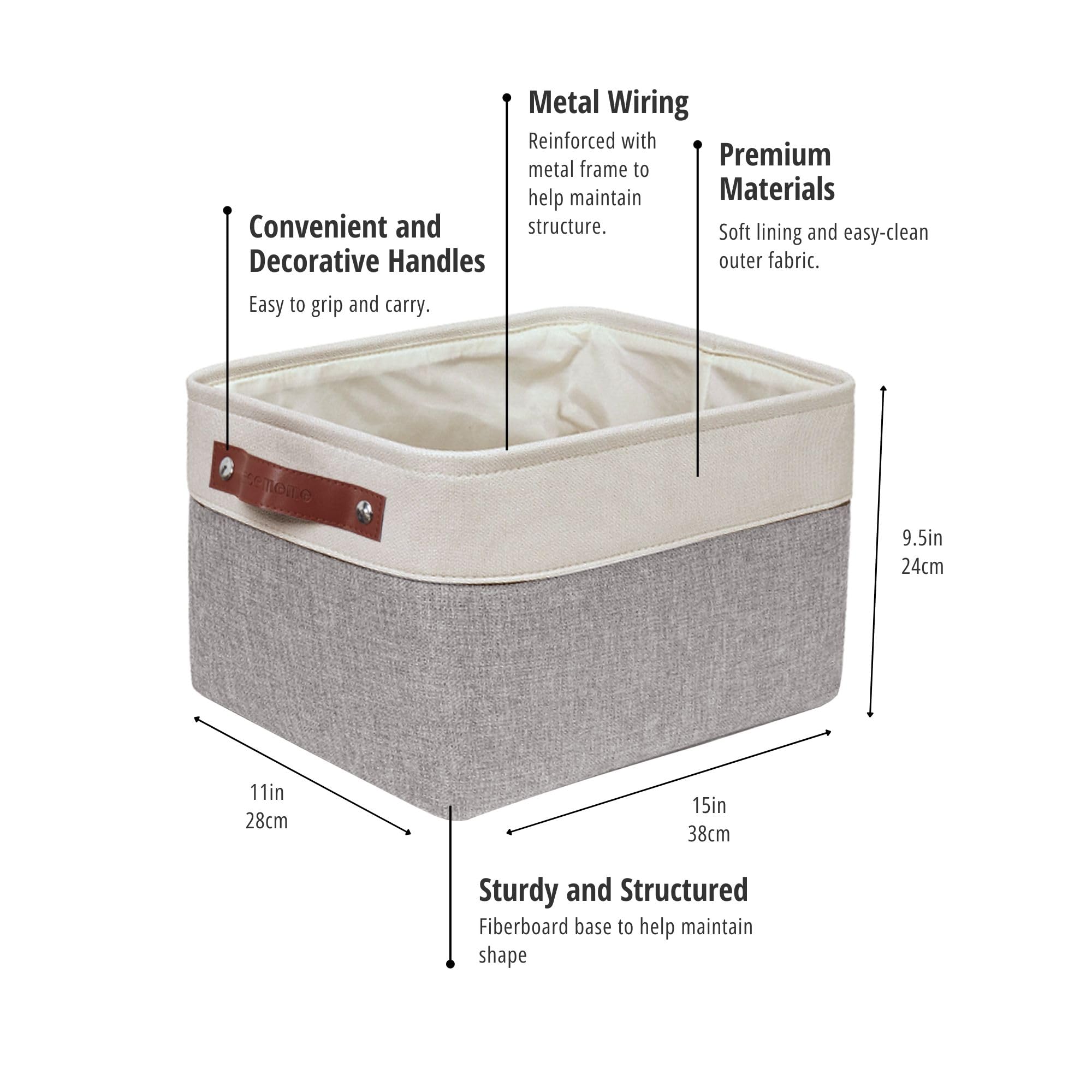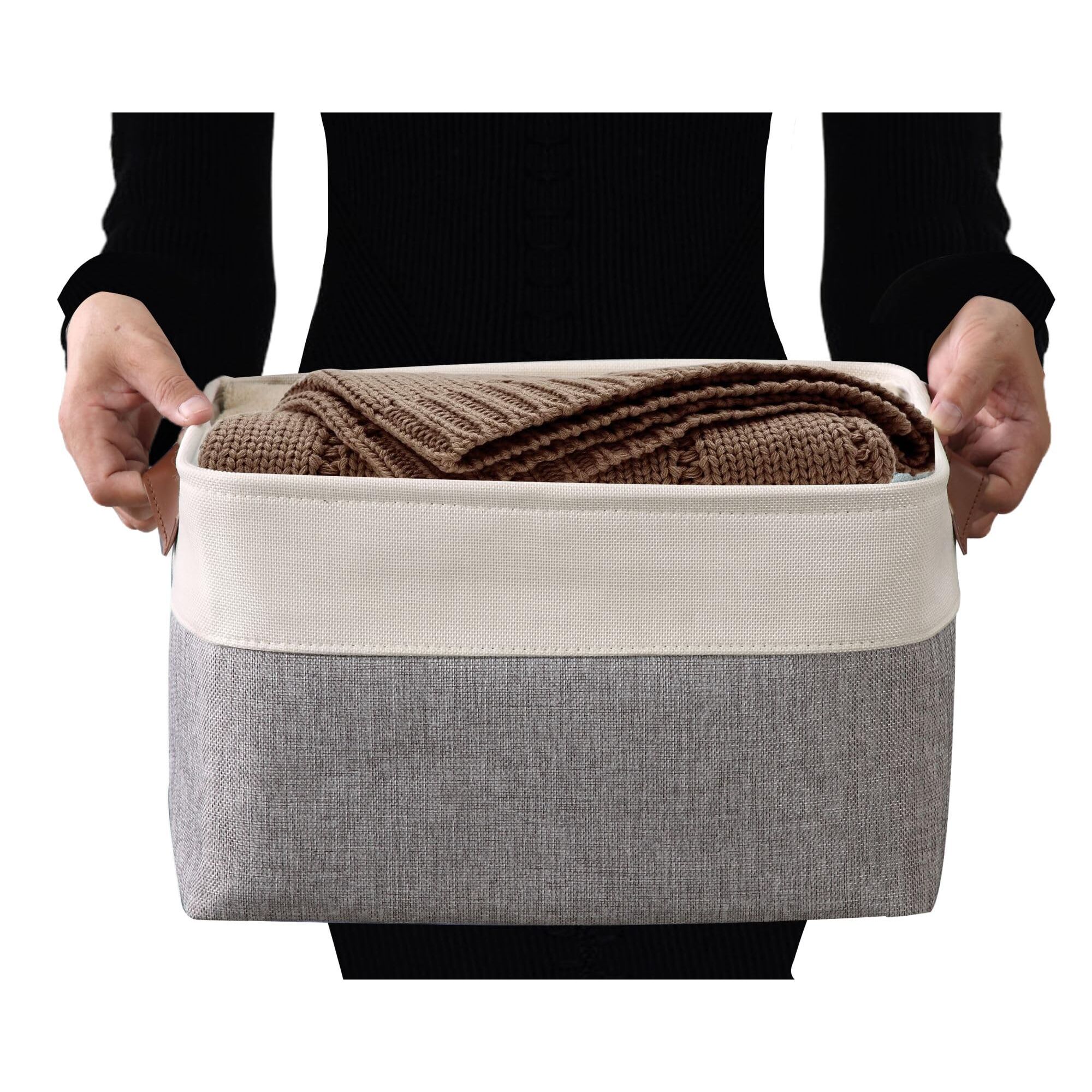 DECOMOMO Faltbarer Aufbewahrungskorb | Faltbarer stabiler kationischer Stoff-Aufbewahrungskorb mit Griffen für die Organisation von Regal, Kinderzimmer, Zuhause, Schrank (weiss, gross – 3 Stück)