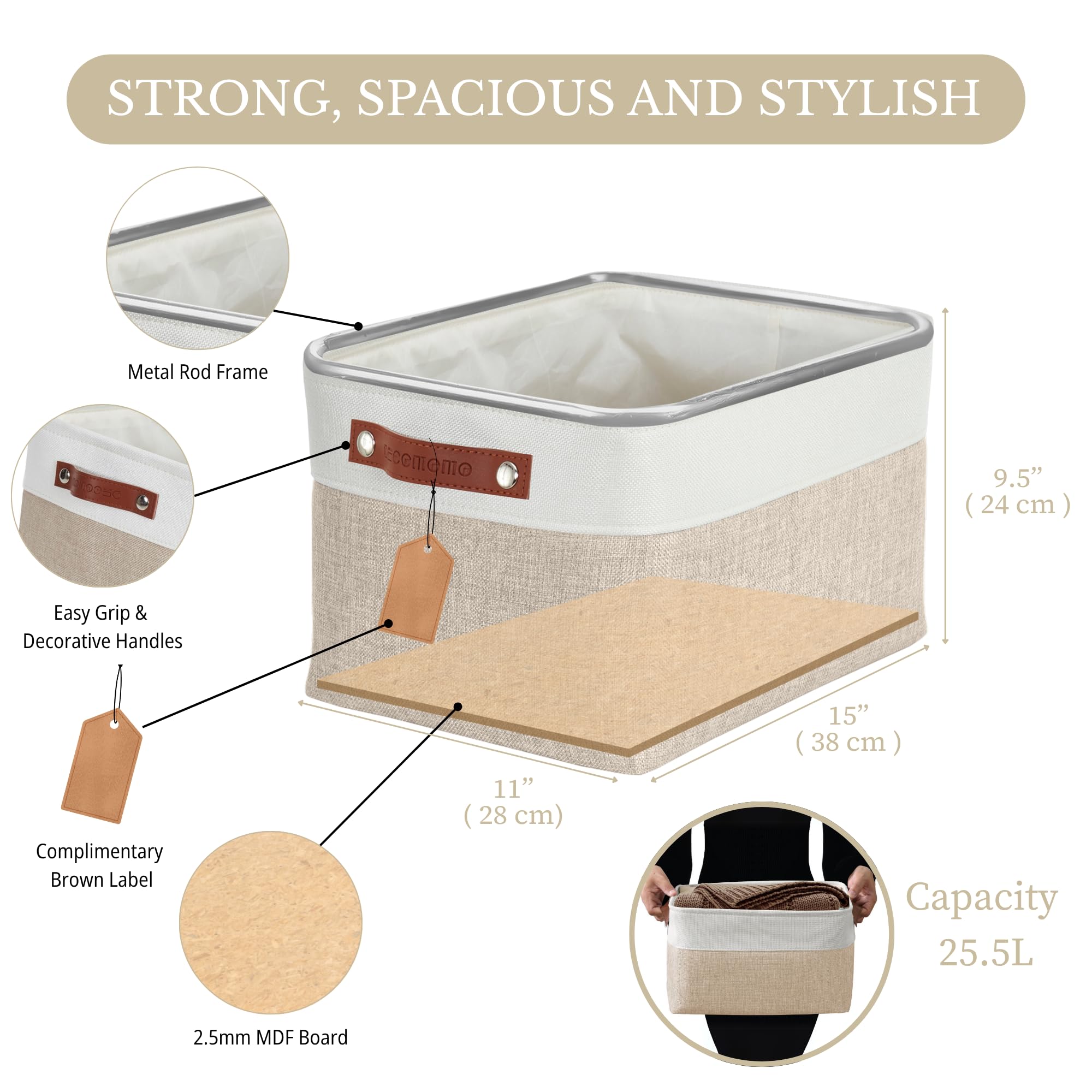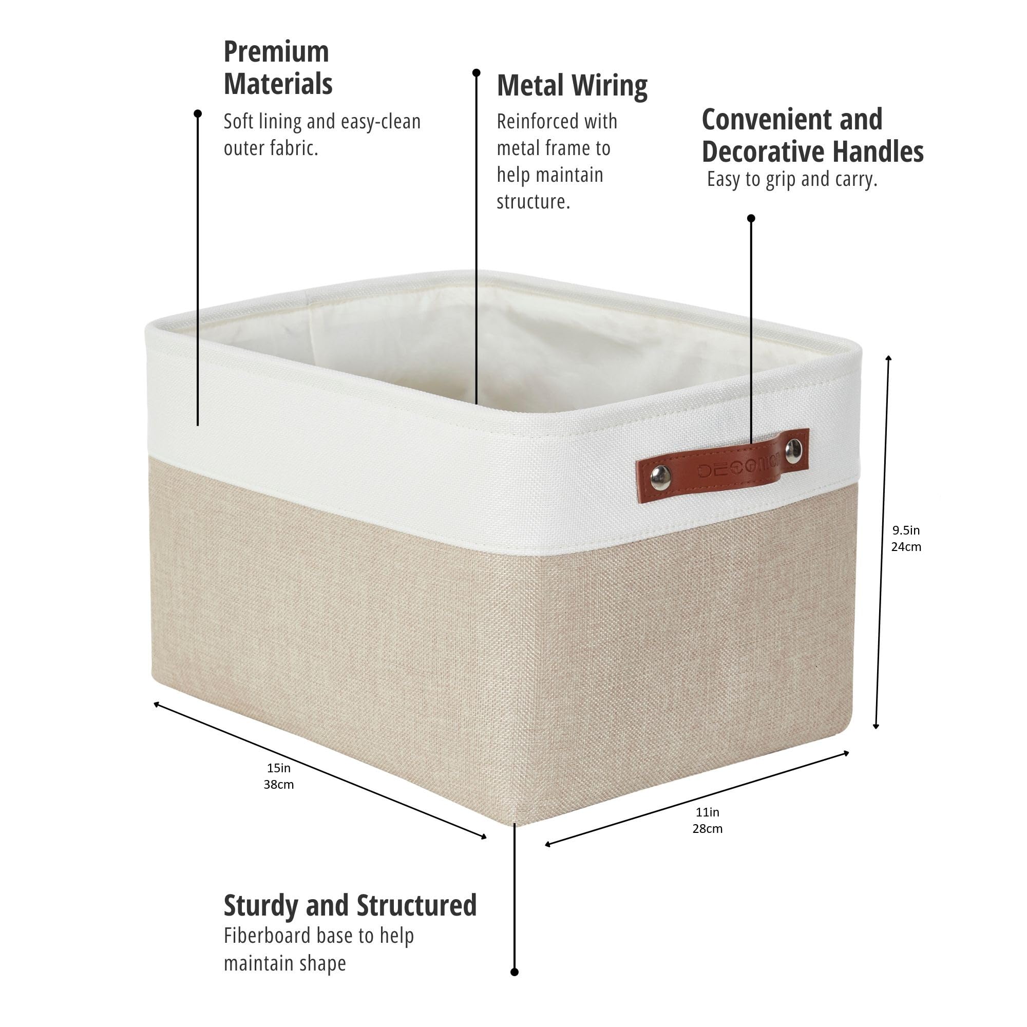 DECOMOMO Aufbewahrungsbehälter aus Stoff mit Griffen, Aufbewahrungskorb für Regale, zum Organisieren von Schrank, Regal, Kinderzimmer, Spielzeug, dekorative grosse Schrankorganisation aus Leinen, Beige