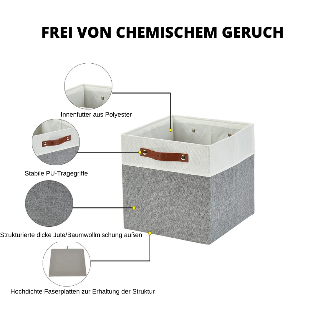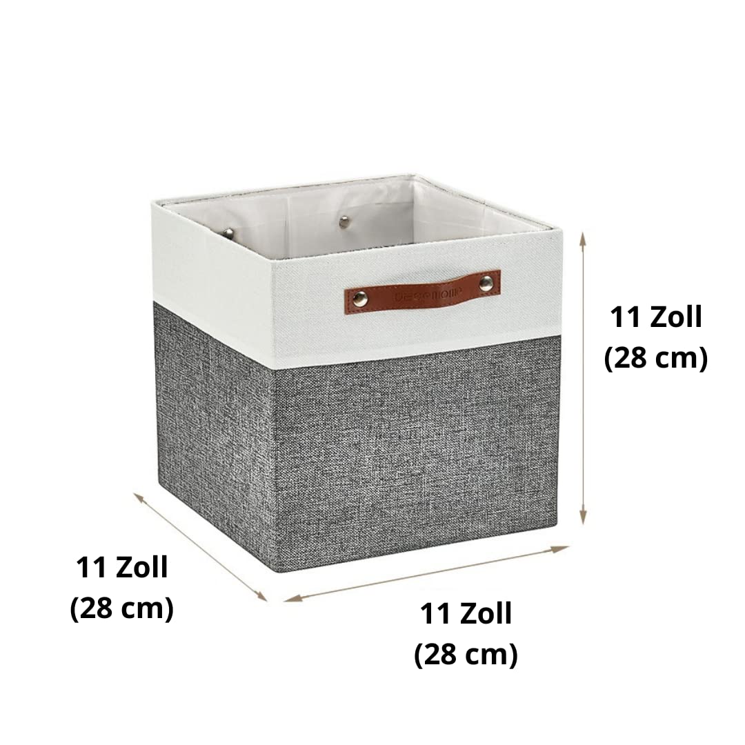 DECOMOMO faltbare Aufbewahrungskorb | robuster Stoffkorb mit Griffen für die Organisation von Regal, Kinderzimmer, Spielzeug, Schrank (Gray and white, 28cm – 4 Stück)