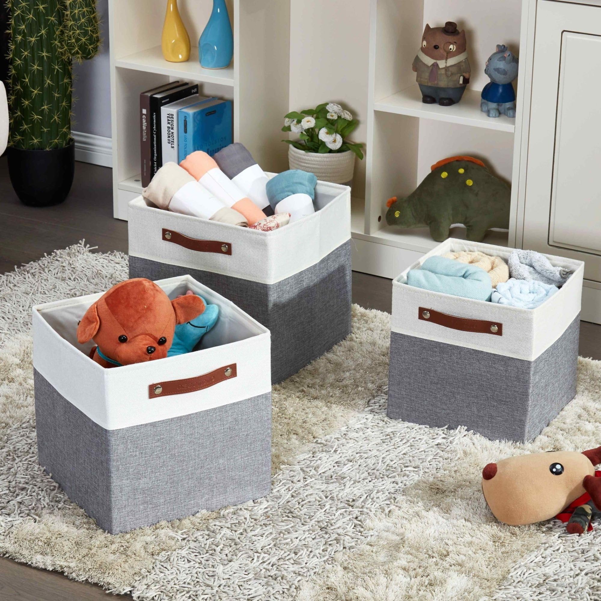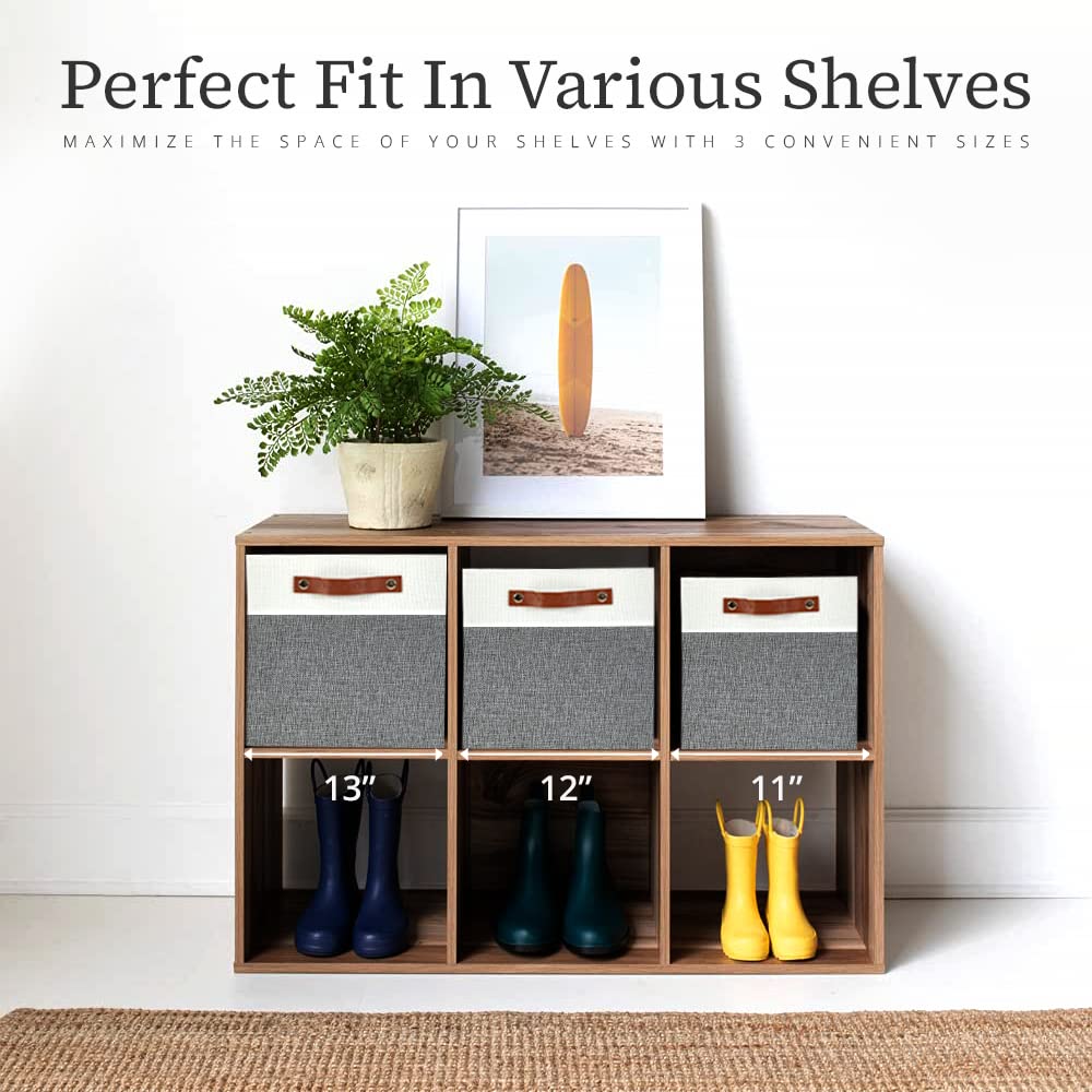 DECOMOMO faltbare Aufbewahrungskorb | robuster Stoffkorb mit Griffen für die Organisation von Regal, Kinderzimmer, Spielzeug, Schrank (Gray and white, 30.5cm – 4 Stück)