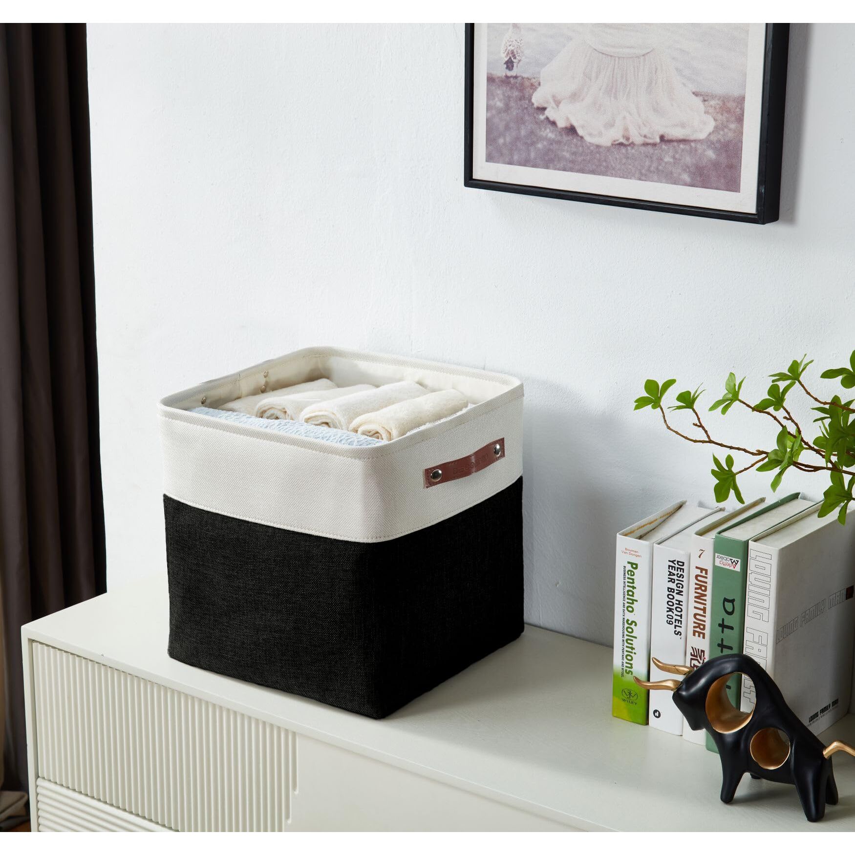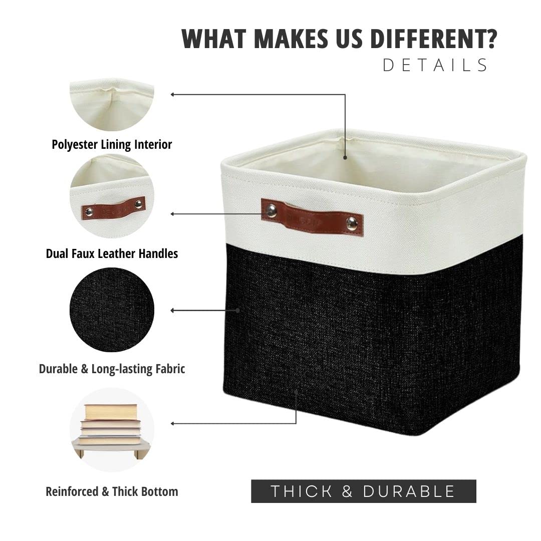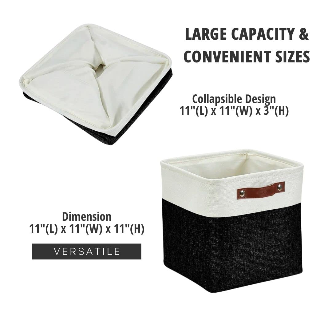 DECOMOMO Faltbarer Aufbewahrungskorb | stabiler kationischer Stoff-Aufbewahrungskorb mit Griffen für die Organisation von Regal, Kinderzimmer, Zuhause, Schrank (schwarz und weiss, Würfel – 11 x 11–4