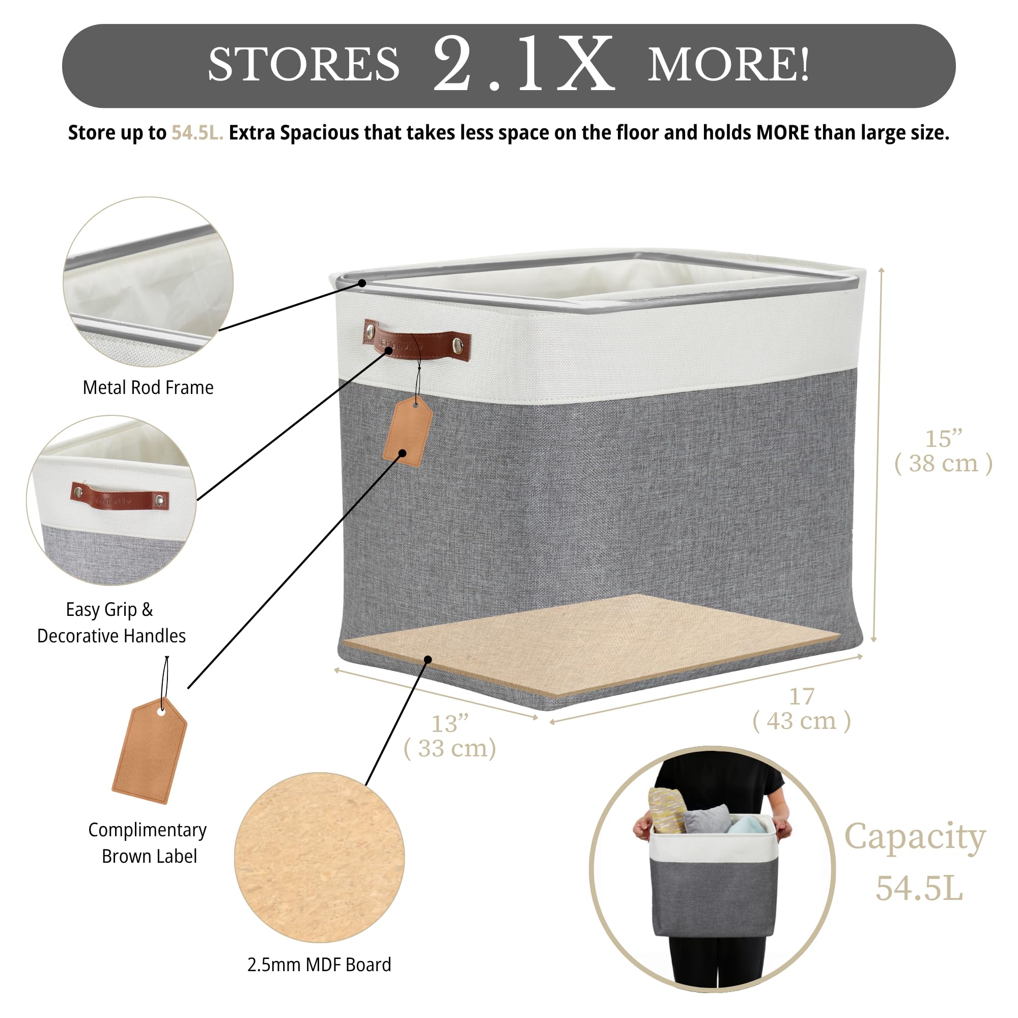 Masse des Aufbewahrungsbehälters 43cm x 33cm x 38cm (L x B x H)