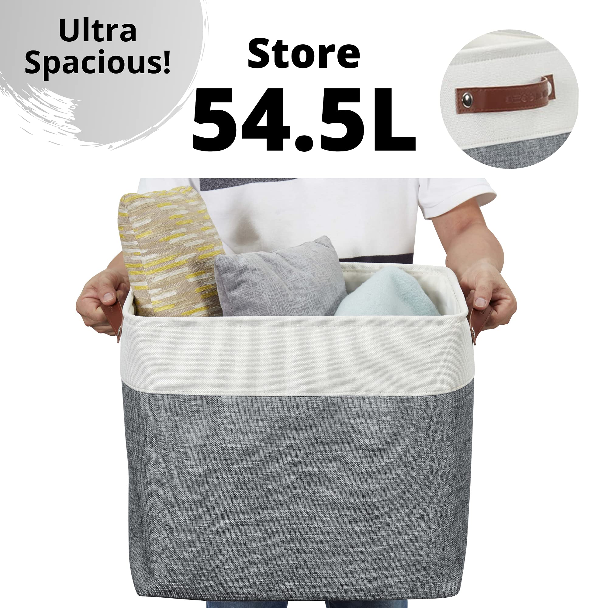 DECOMOMO Faltbarer Aufbewahrungskorb | stabiler kationischer Stoff-Aufbewahrungskorb mit Griffen für die Organisation von Regal, Kinderzimmer, Zuhause, Schrank (schiefergrau und weiss, Jumbo) – 3 Stück