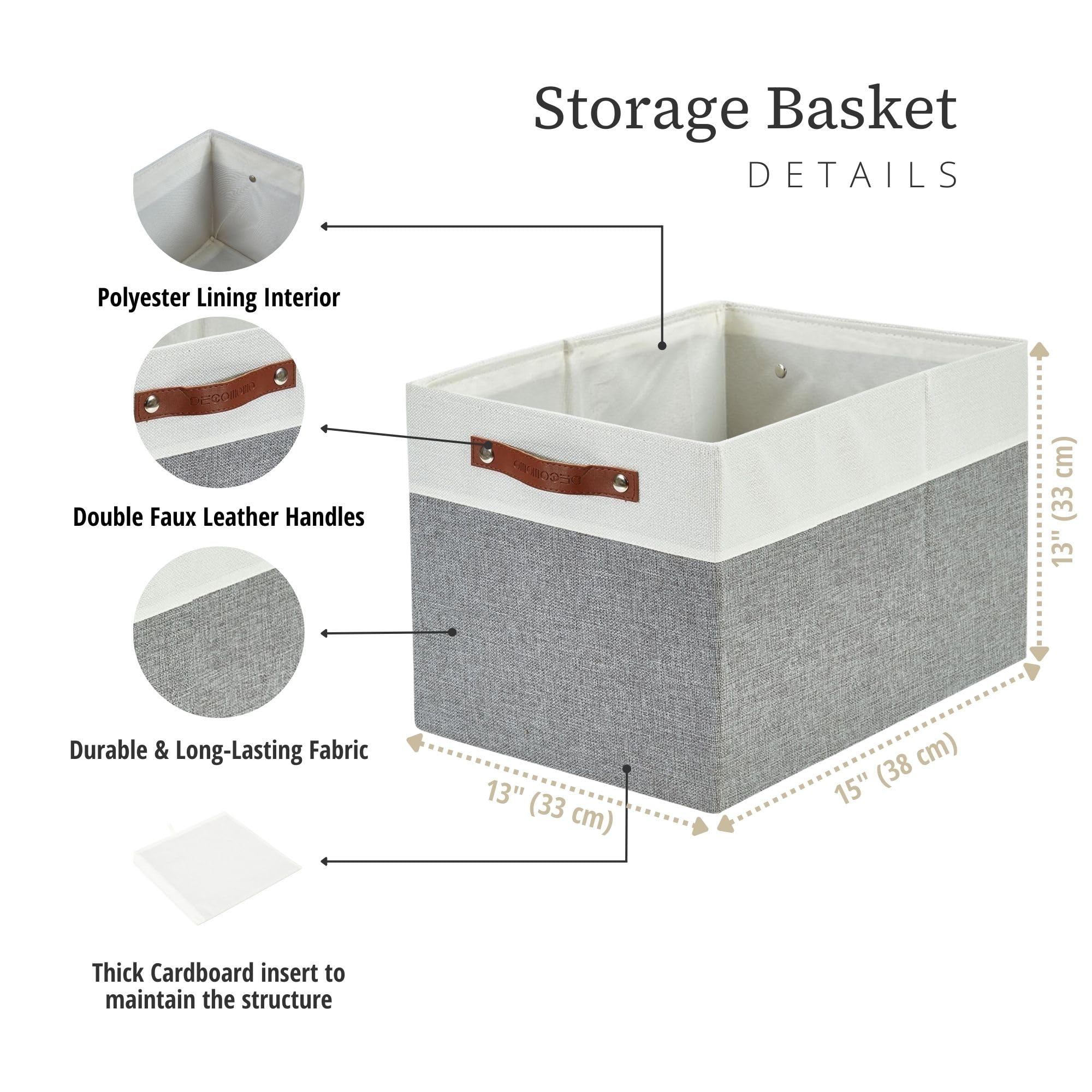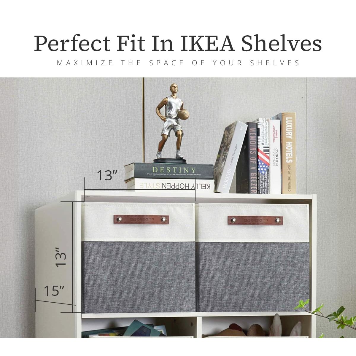 DECOMOMO Cubby Aufbewahrungskörbe | 33 x 38,1 x 33 cm Stoff-Aufbewahrungswürfel für Kallax Regale, Stoff, Kinderzimmer, dekorativ mit Griffen (Grau und Weiss, 33 x 38,1 x 33 cm, 3P)