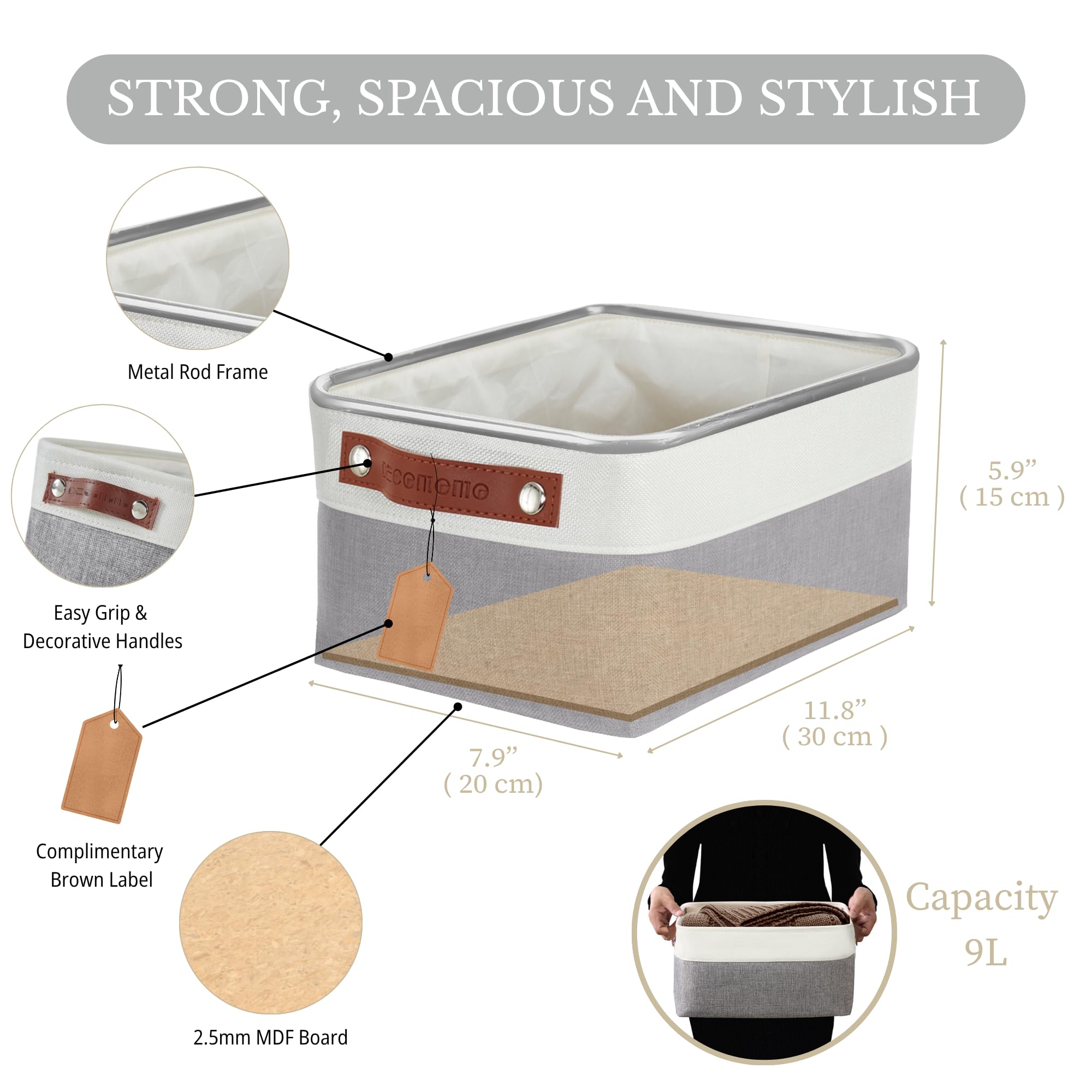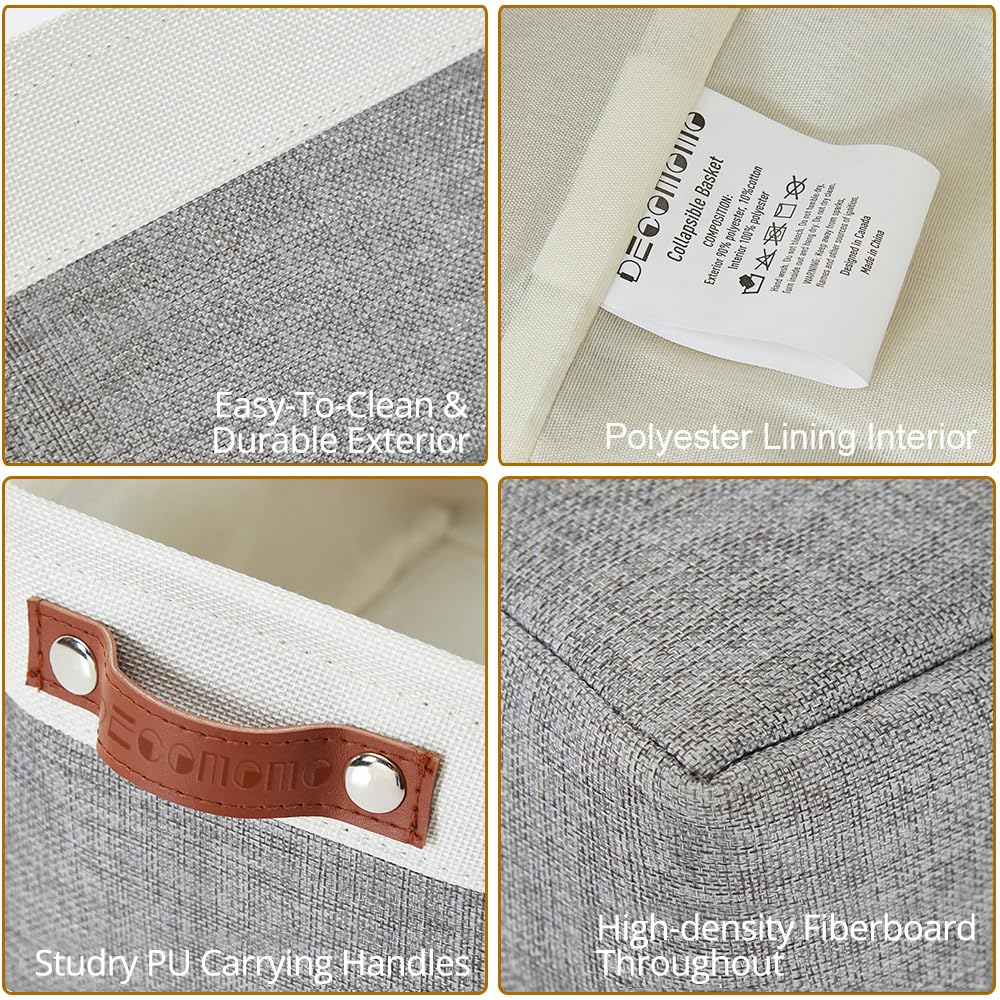DECOMOMO faltbare Aufbewahrungskorb | robuster Stoffkorb mit Griffen für die Organisation von Regal, Kinderzimmer, Spielzeug, Schrank (Grau und Weiss, Klein - 6er Pack)