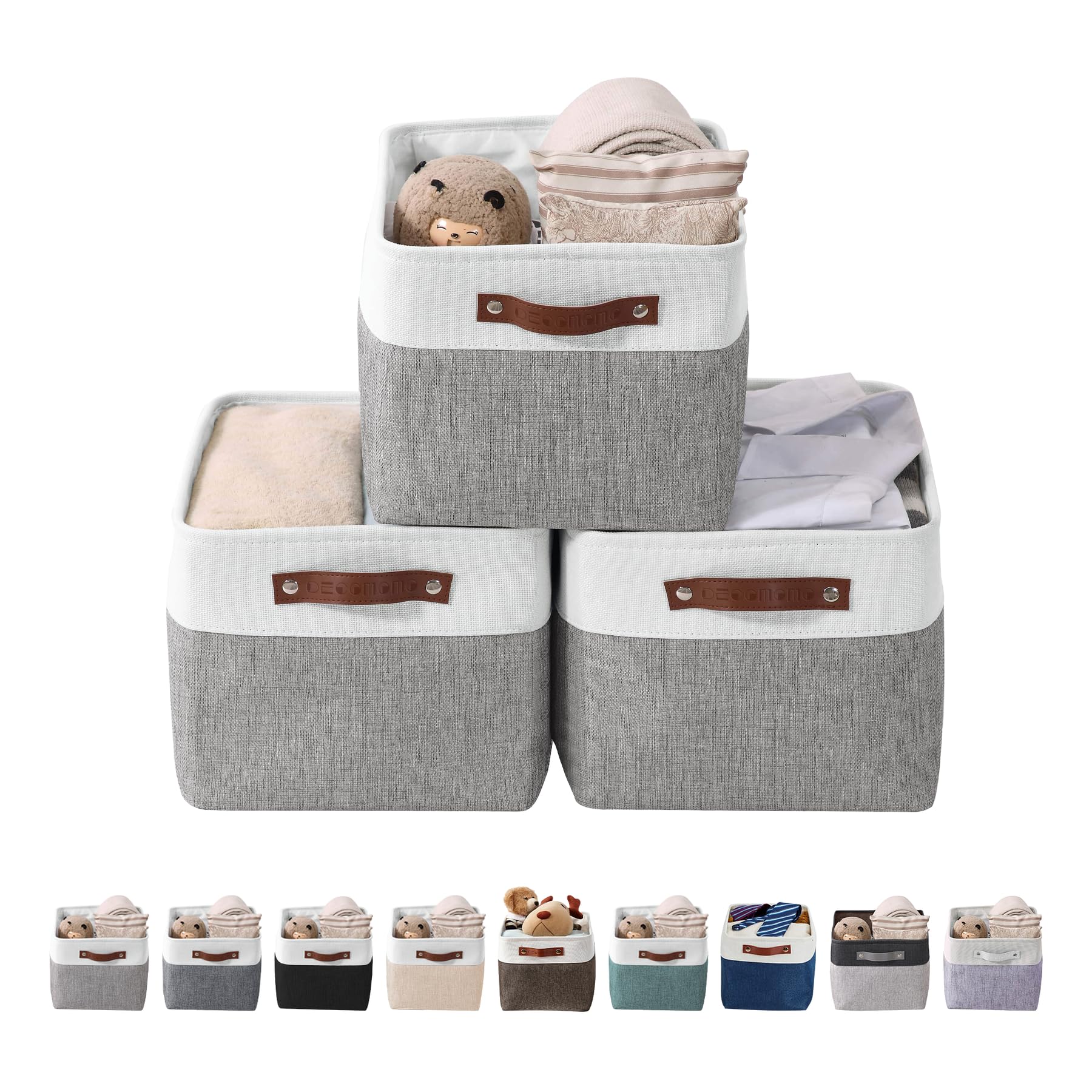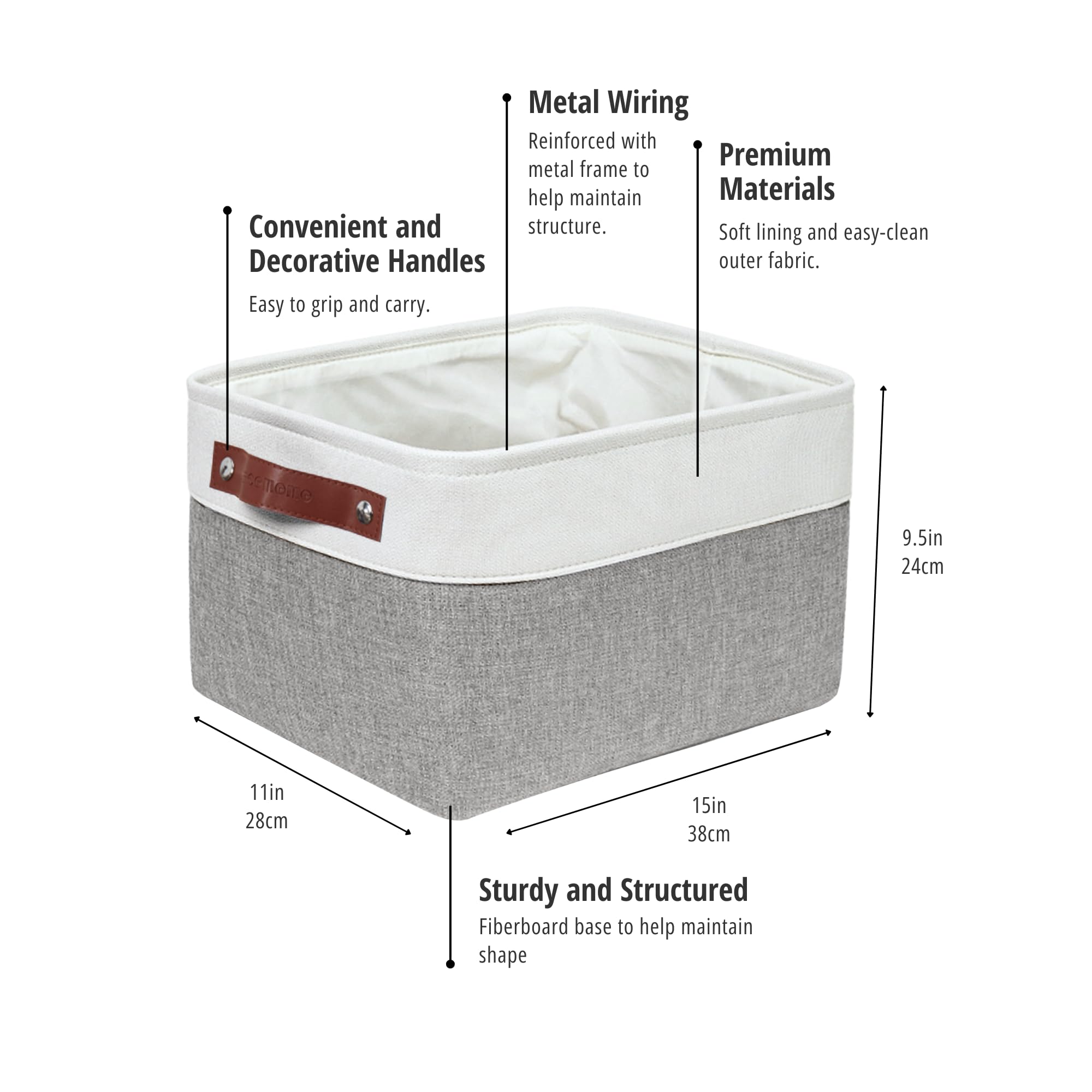 DECOMOMO faltbare Aufbewahrungskorb | robuster Stoffkorb mit Griffen für die Organisation von Regal, Kinderzimmer, Spielzeug, Schrank (Grau und Weiss, gross–4 Stück)