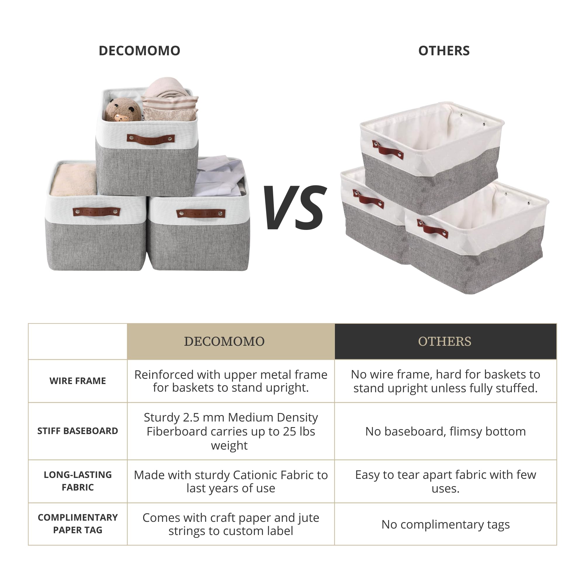 DECOMOMO Faltbarer Aufbewahrungsbehälter, verbessert, Organisieren und Reinigen wird eine ganz neue Bedeutung mit den faltbaren Aufbewahrungsbehältern von DECOMOMO. Unsere faltbaren Aufbewahrungskörbe machen Dinge leicht zu finden. Eine einfache und modische Lösung, um Ihr Zuhause oder Büro besser zu organisieren und aufzuräumen. Dies ist wirklich eine Mehrzweck-Organisationseinheit, die jeden Stil und jedes Dekor ergänzt. Mehrzweck-AnwendungPasst zu jedem Zuhause, Büro und RaumPerfekt für Schrank in Zimmern: Kleidung, Hüte, Gürtel usw. Wohnzimmer: Zeitschriften, Bücher, Steuerungen, Fernbedienungen, Kerzen, DVDs, BrettspieleBadezimmer: Taschentücher, sonnentrockene Aufbewahrung, Kämme, Schönheitsbedarf, Make-upFamilienzimmer: Spielzeug, Decken, Spiele, Kleidung, Regal-Organizer: Waschmittel, Waschmittel. Allgemeiner Lagerung: Speisekammer. Trockenwaren, Bettwäsche und Handtücher, Aufbewahrungskorb für Einkäufe im Auto und viele weitere praktische Verwendungen, die Sie sich vorstellen können! Modisch und robustSchickes und modisches Design, das zu Inneneinrichtungen in jedem Haushalt oder Büro passt. Beschriften Sie jeden Mülleimer mit der mitgelieferten Juteschnur und Etikett mit unserem DIY-Set. Personalisieren Sie Ihren Korb mit einem Stil, der zu jeder Einrichtung passt. Erstellen Sie Ihre eigenen Etiketten für eine vollständige Personalisierung. Grösser als die meisten Mülleimer. Grosszügige Grösse unserer Aufbewahrungsbehälter. Grösser als die meisten zusammenklappbaren Mülleimer, so dass Sie mehr bewegen und mehr verstauen können. Perfekte Geschenkidee: Ob es sich um ein Einweihungsgeschenk oder für Studenten handelt, die nicht zu Hause mit begrenztem Platz leben. Unsere faltbaren Aufbewahrungskörbe passen zu den Rechnungen und Dekorationen. Material: Jute/Baumwoll-Mischgewebe.