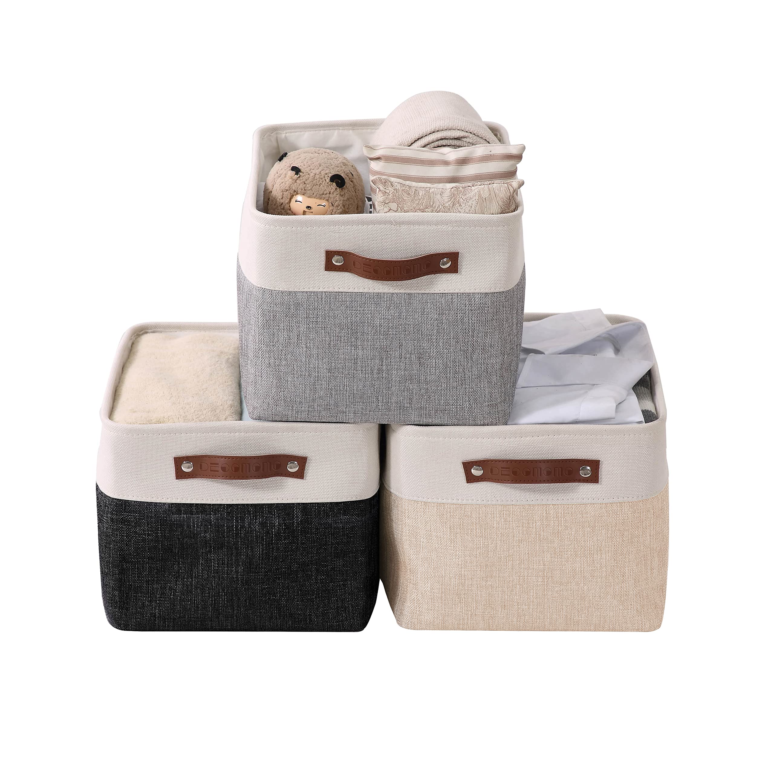 DECOMOMO Faltbarer Aufbewahrungskorb | Faltbarer stabiler Stoffkorb mit Griffen für die Organisation von Regal, Kinderzimmer, Spielzeugschrank (gemischt, neutral, gross – 15 x 11 x 9,5 – 3 Stück)