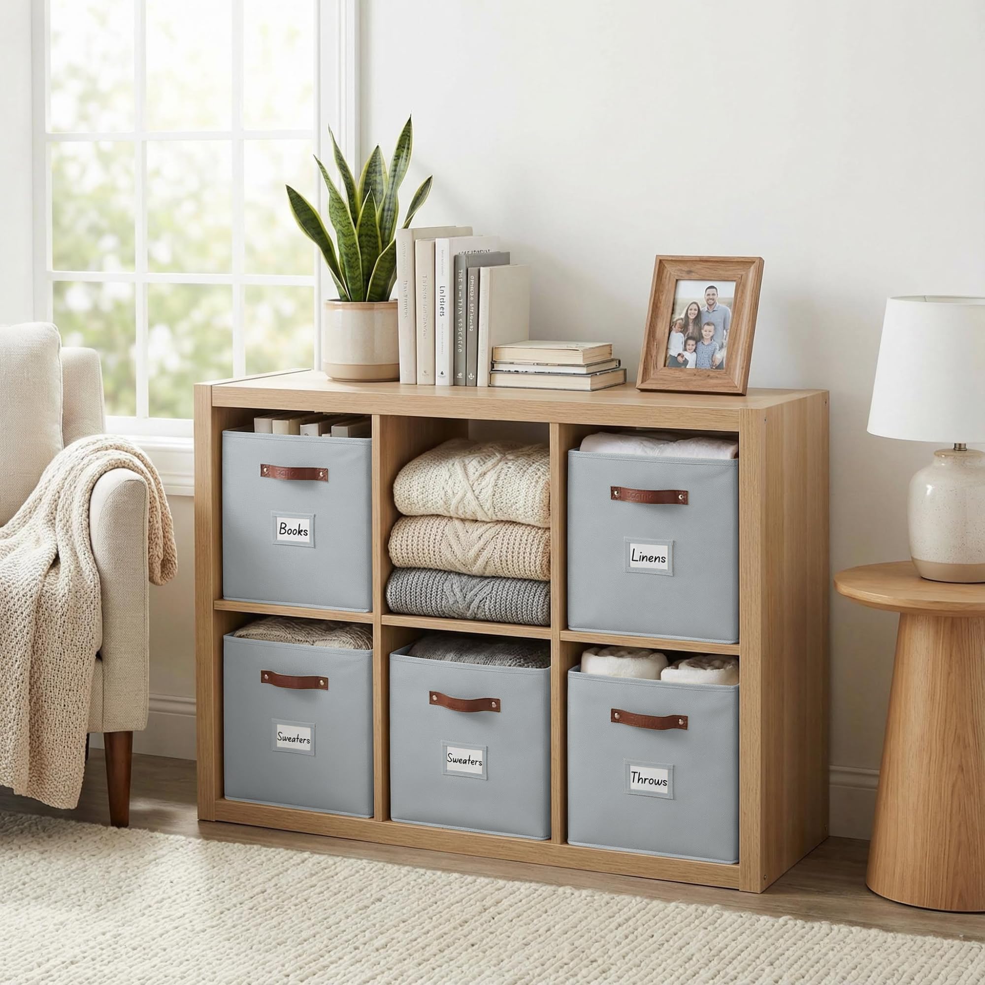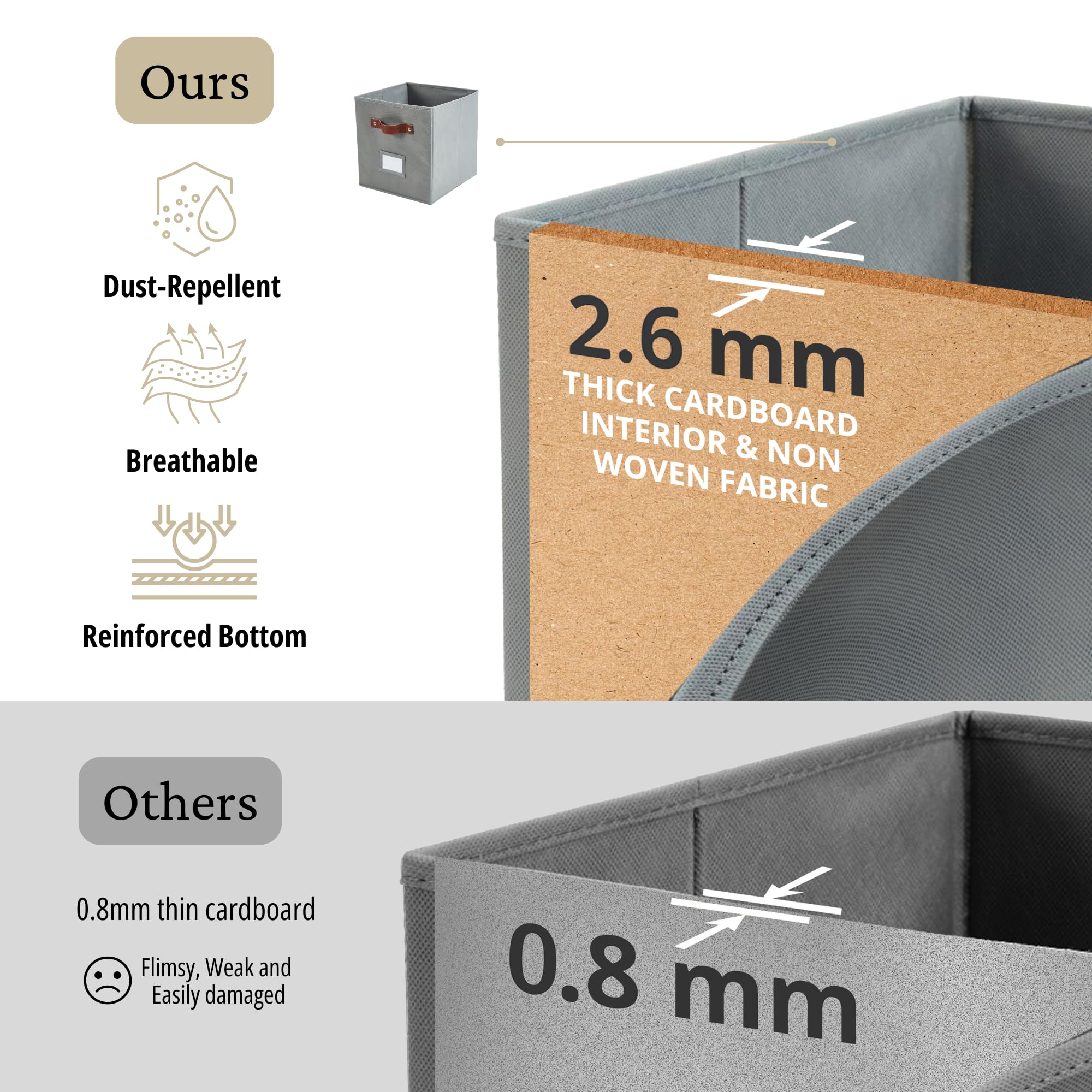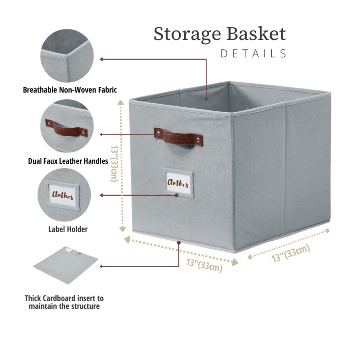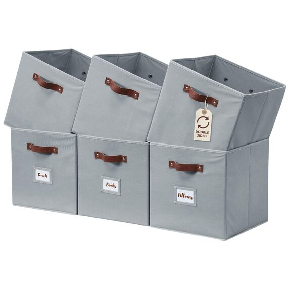 DECOMOMO Aufbewahrungswürfel, 33 x 33 x 33 cm, Aufbewahrungswürfel mit Etiketten, Stoff-Organizer-Behälter (33 cm, 6 Stück, grau)