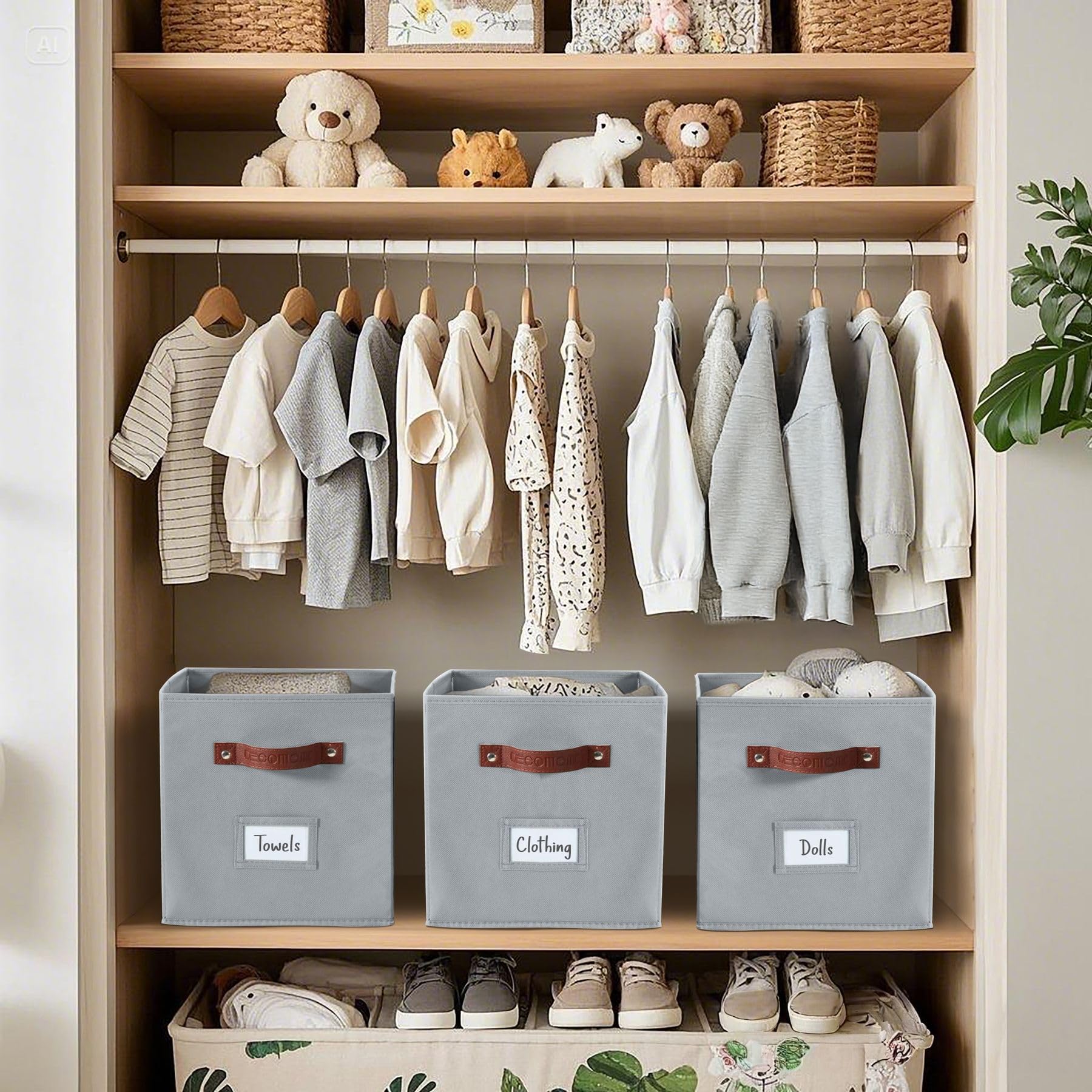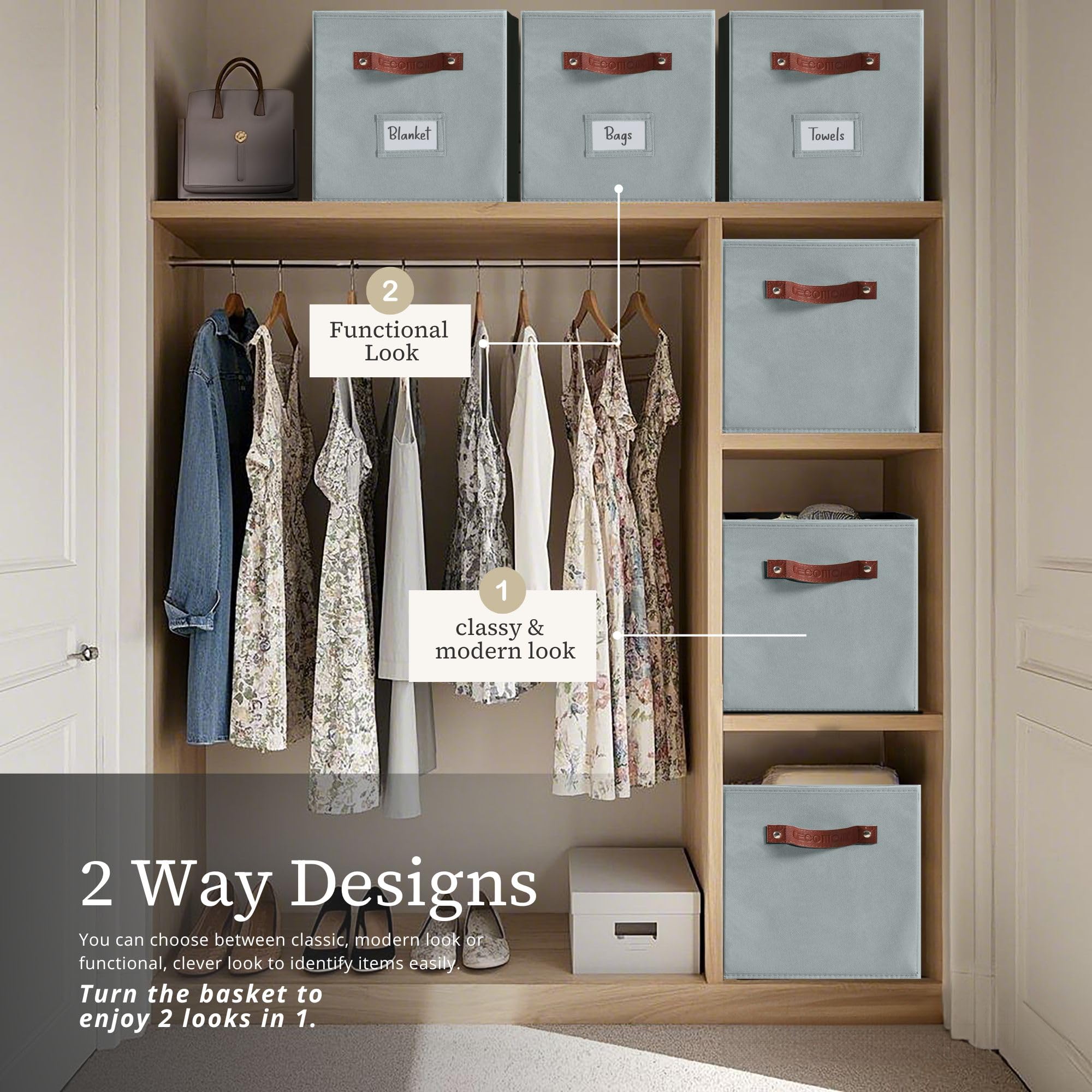 DECOMOMO Die Aufbewahrungskörbe mit Griffen sind eine vielseitige Lösung für Ihre Regalorganisation. Diese Aufbewahrungswürfel sind in verschiedenen Grössen erhältlich und passen in jedes Regal oder jeden Schrank-Organizer. Mit seinem modernen Design und den robusten Griffen ist er leicht zu greifen und zu bewegen. Seine stabile Konstruktion bietet Platz für Kleidung, Schuhe, Bücher und Spielzeug. Halten Sie Ihren Schrank ordentlich und aufgeräumt mit den faltbaren Aufbewahrungswürfeln von DECOMOMO.