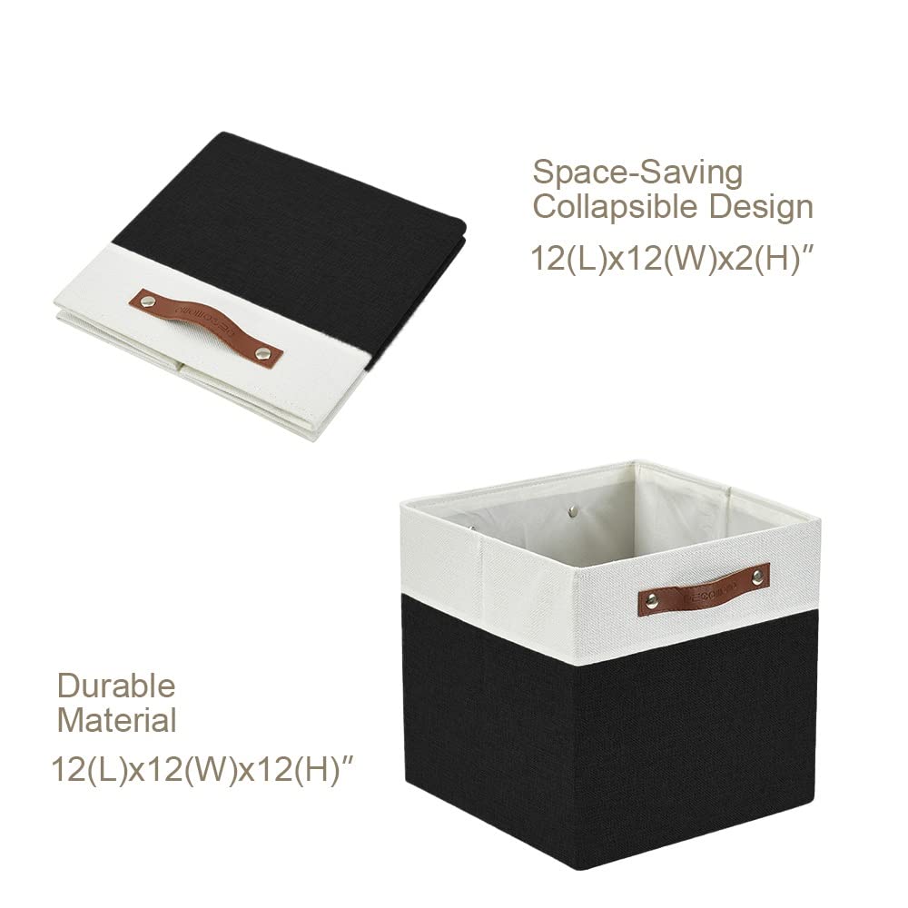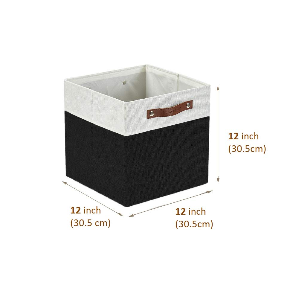 DECOMOMO Faltbarer Aufbewahrungskorb Stabiler kationischer Stoff-Aufbewahrungskorb mit Griffen für die Organisation von Regalen, Kinderzimmer (Schwarz and Weiss, 30.5cm – 4 Stück)