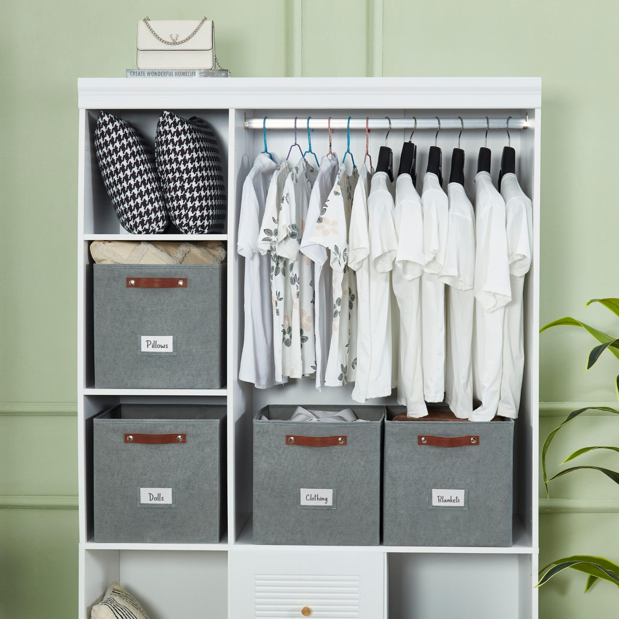 DECOMOMO Die Aufbewahrungskörbe mit Griffen sind eine vielseitige Lösung für Ihre Regalorganisation. Diese Aufbewahrungswürfel sind in verschiedenen Grössen erhältlich und passen in jedes Regal oder jeden Schrank-Organizer. Mit seinem modernen Design und den robusten Griffen ist er leicht zu greifen und zu bewegen. Seine stabile Konstruktion bietet Platz für Kleidung, Schuhe, Bücher und Spielzeug. Halten Sie Ihren Schrank ordentlich und aufgeräumt mit den faltbaren Aufbewahrungswürfeln von DECOMOMO.