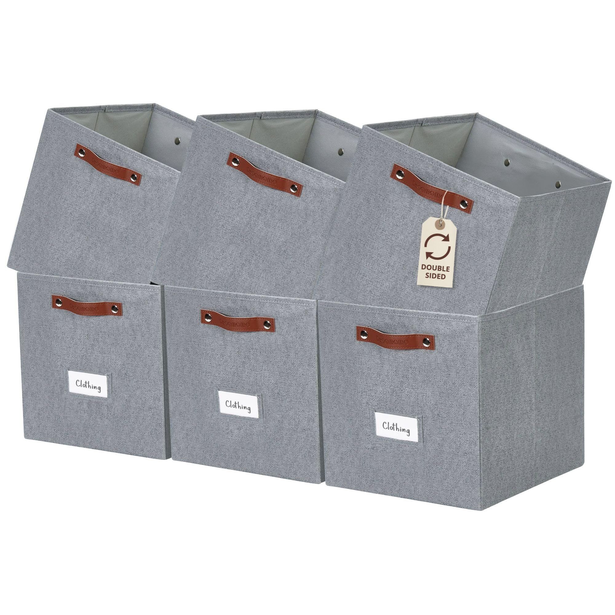 DECOMOMO Aufbewahrungswürfel, 33 x 33 x 33 cm, Aufbewahrungswürfel mit Etiketten, Stoff-Organizer-Behälter (33 cm, 6 Stück, Texturgrau)