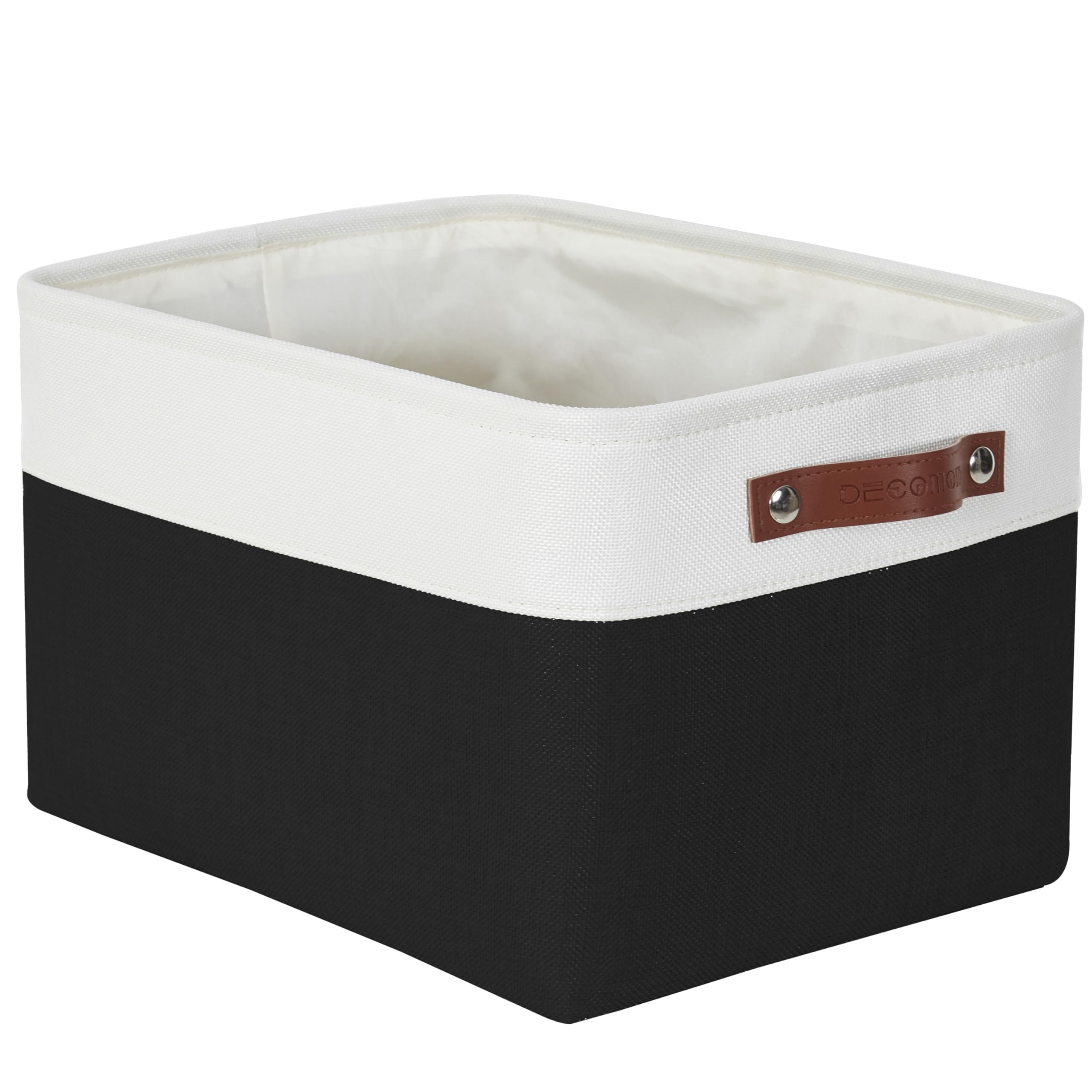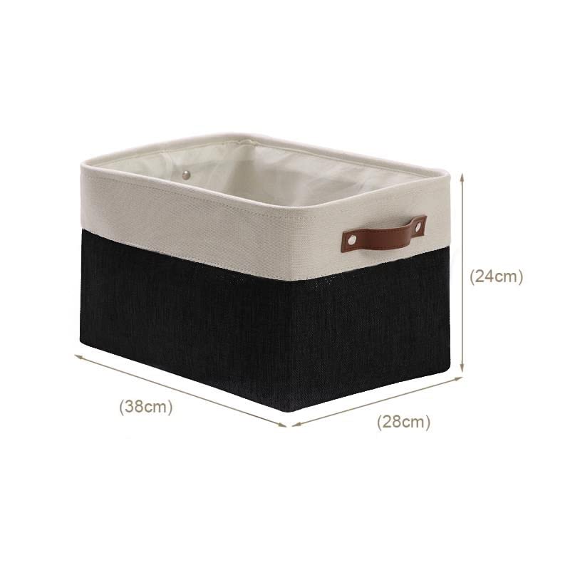 DECOMOMO faltbare Aufbewahrungskorb | robuster Stoffkorb mit Griffen für die Organisation von Regal, Kinderzimmer, Spielzeug, Schrank (Schwarz und Weiss, gross–3 Stück)