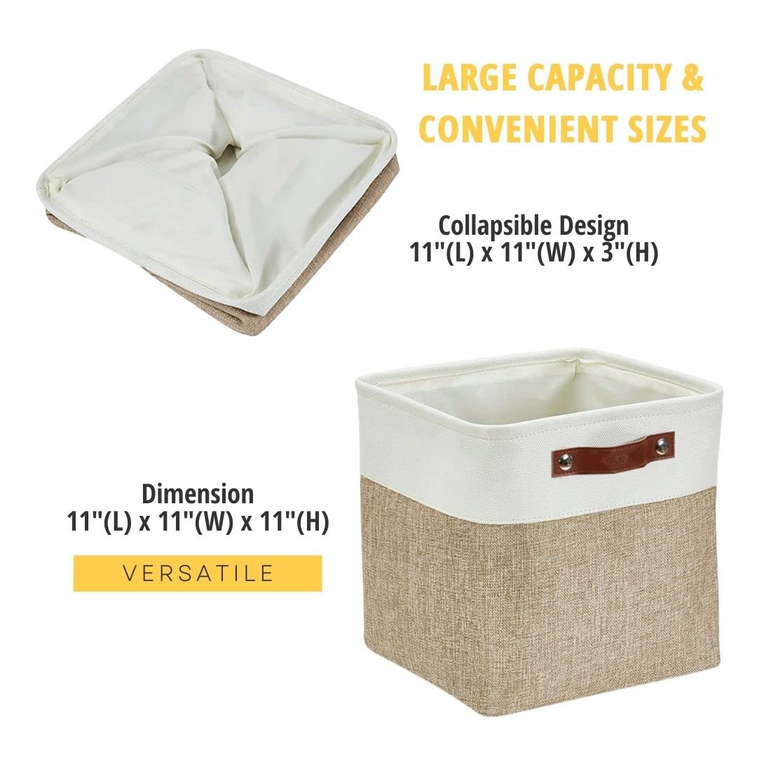 DECOMOMO faltbare Aufbewahrungskorb | robuster Stoffkorb mit Griffen für die Organisation von Regal, Kinderzimmer, Spielzeug, Schrank (Beige und Weiss, Würfel 28cm - 4er Pack)
