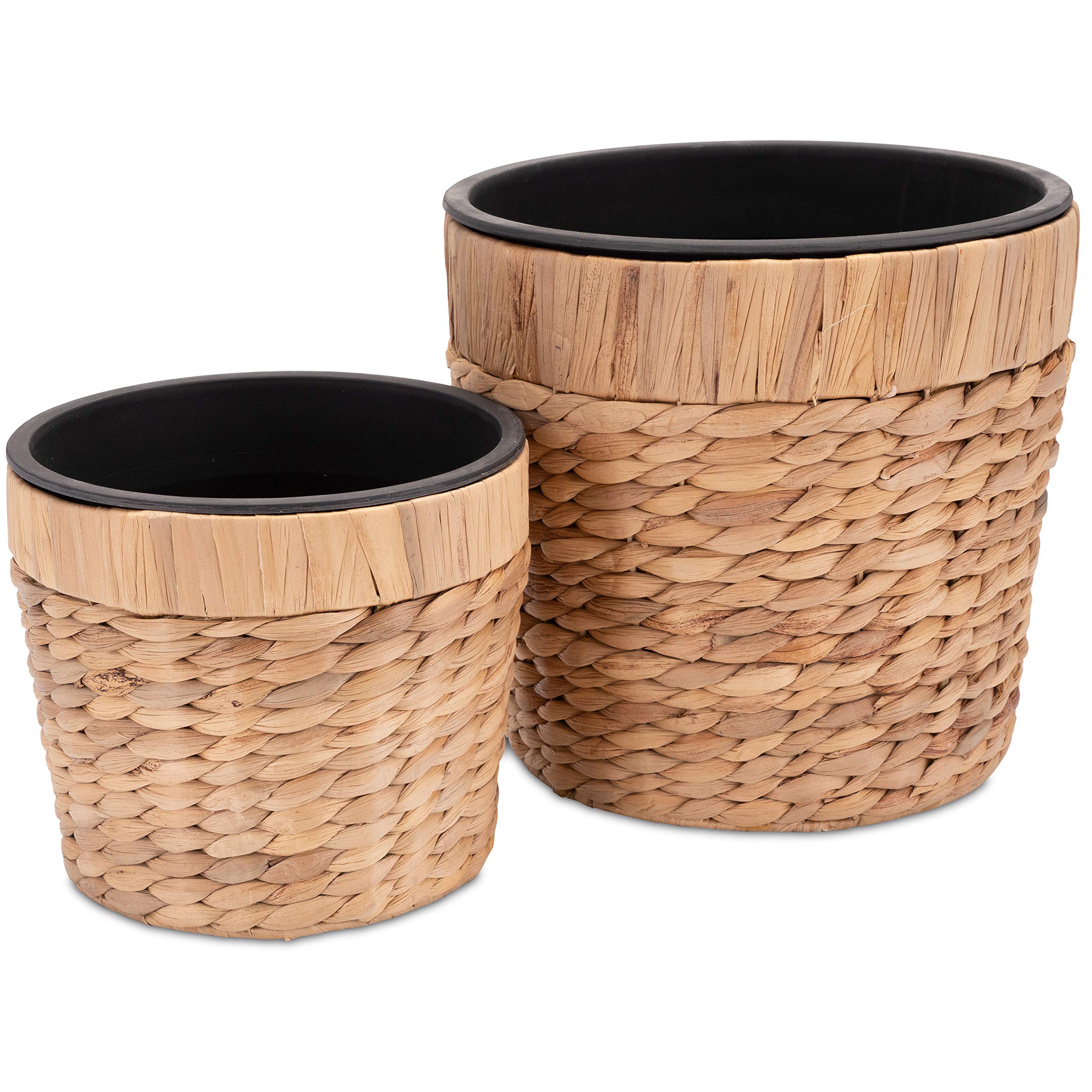 Decorasian 2er Set Blumentopf rund geflochten aus Seegras mit Kunststoffeinsatz zum bepflanzen - Pflanztopf - 20cm + 26cm