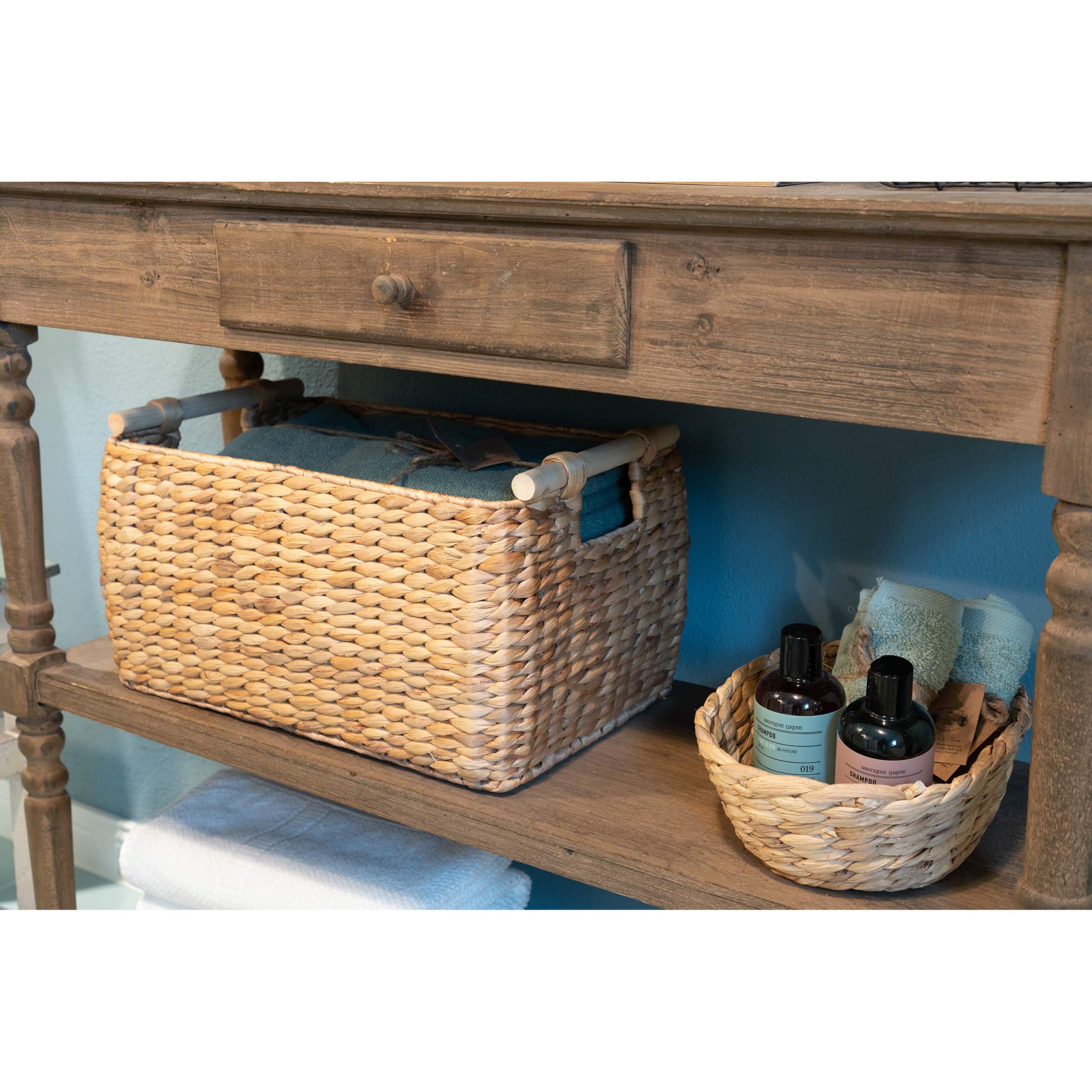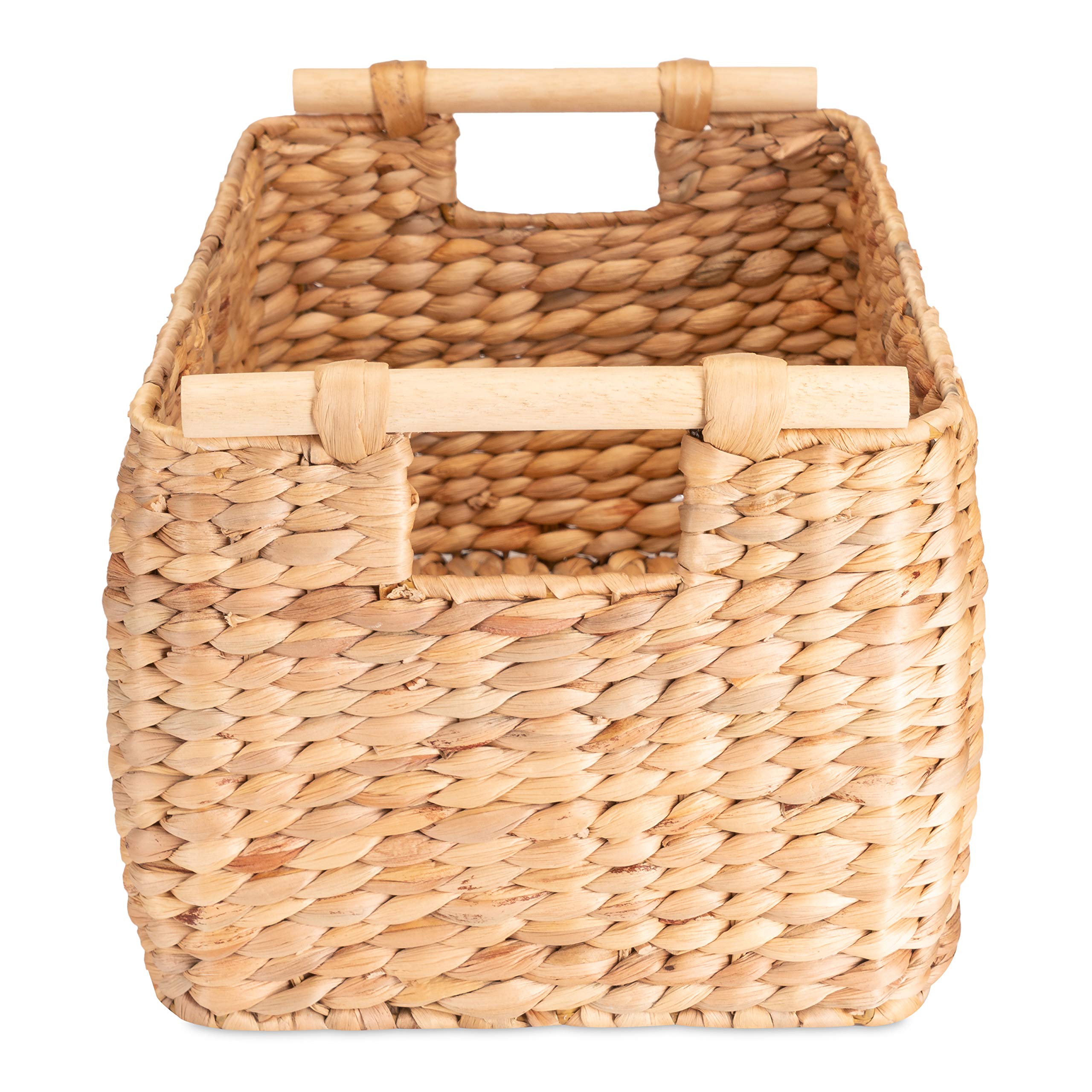 Decorasian Korb Aufbewahrung geflochten aus Wasserhyazinthe - Seegras lang und schmal mit Holzgriff Natur