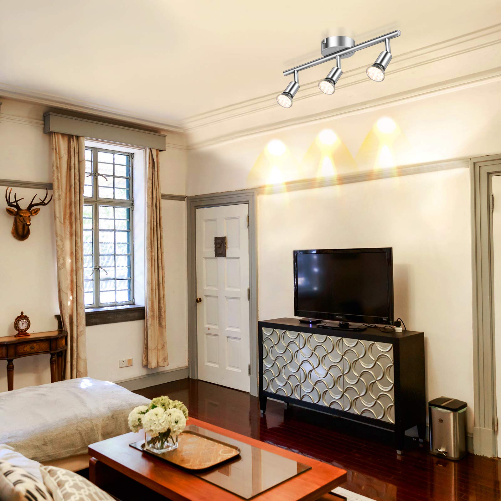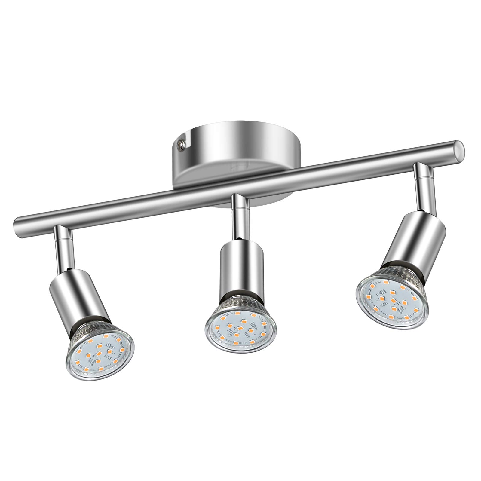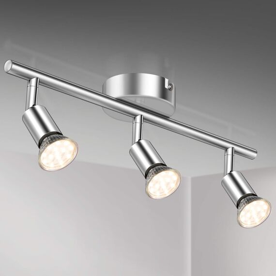 Defurhome LED Deckenleuchte Drehbar, 3 Flammig LED Strahler Deckenlampe Spot,Modern Deckenstrahler (Weisses Chrom) für Küche, Wohnzimmer, Schlafzimmer, inkl. 3 x 4 W GU10 LED Lampen (400LM, warmweiss)