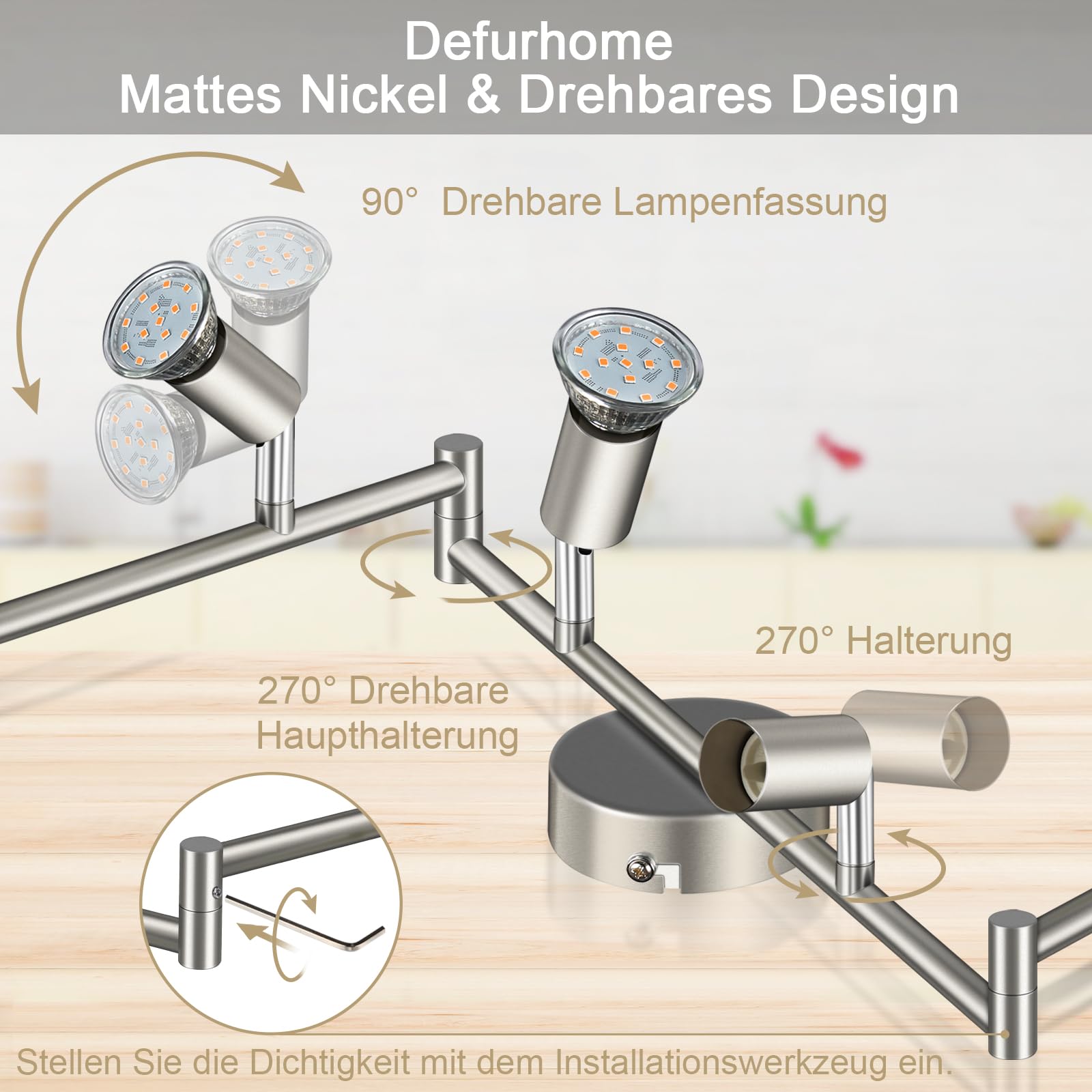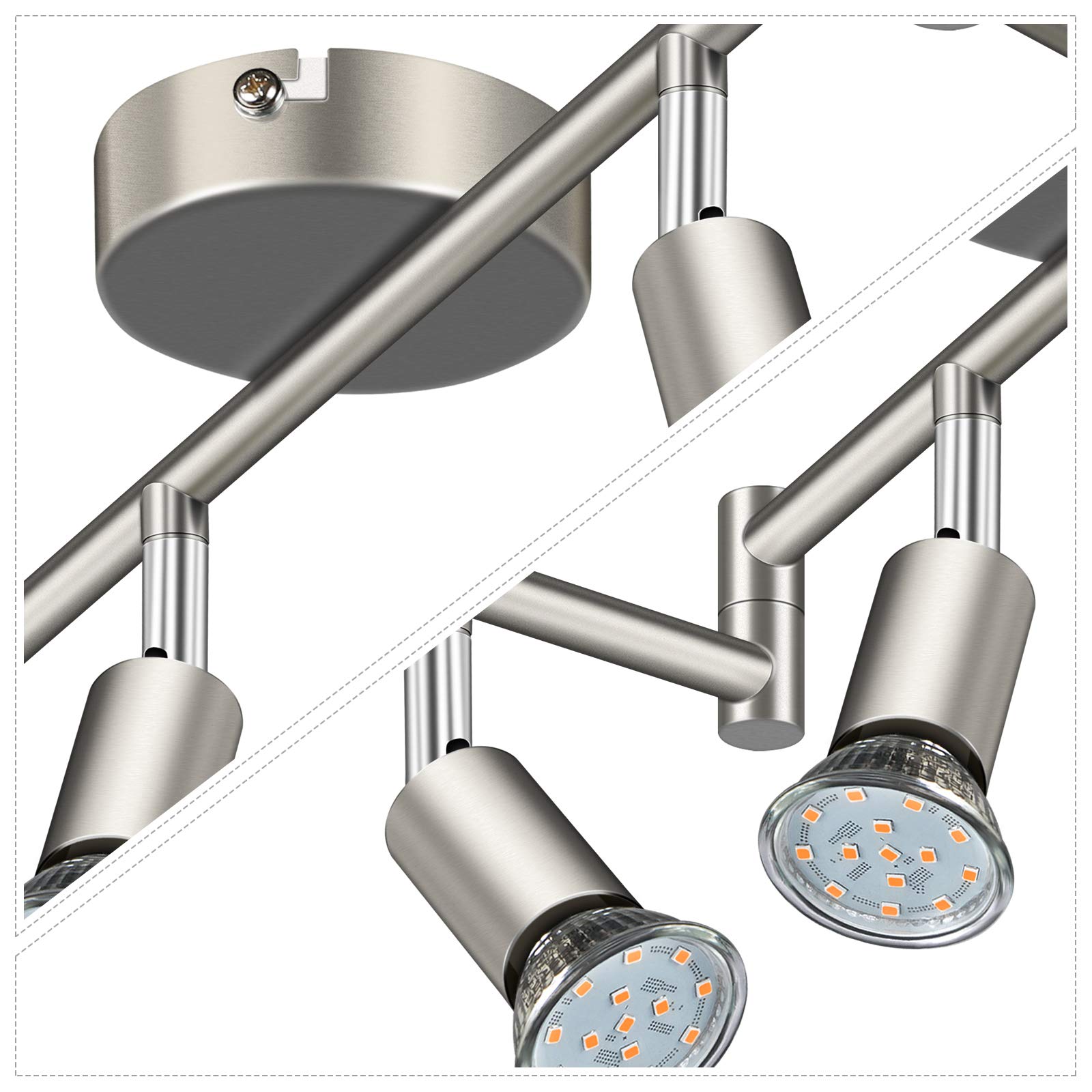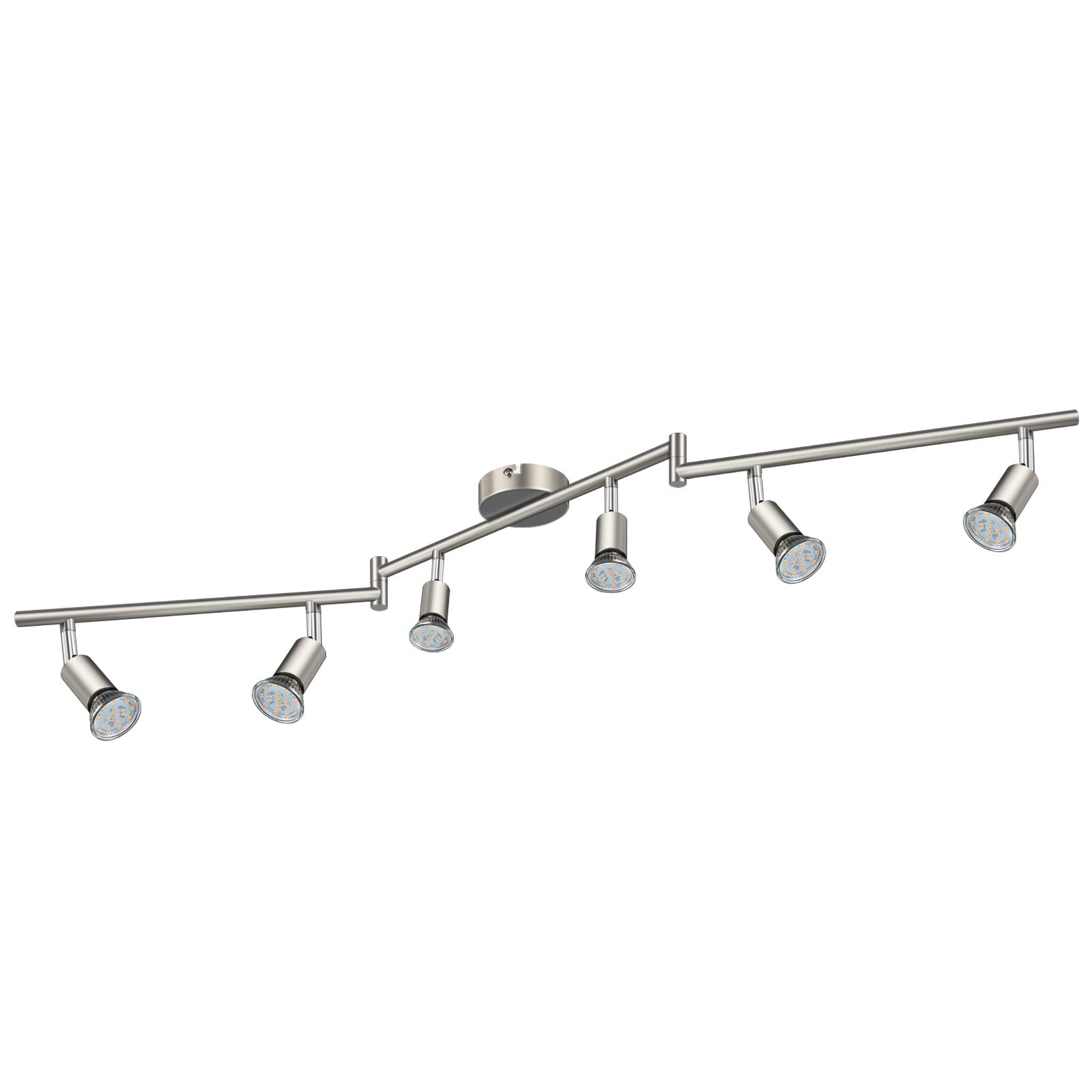 Defurhome LED Deckenleuchte Drehbar, 6 Flammig LED Strahler Deckenlampe Spot,Modern Deckenstrahler (Mattes Nickel), inkl. 6 x 4 W GU10 LED Lampen (400LM, warmweiss)