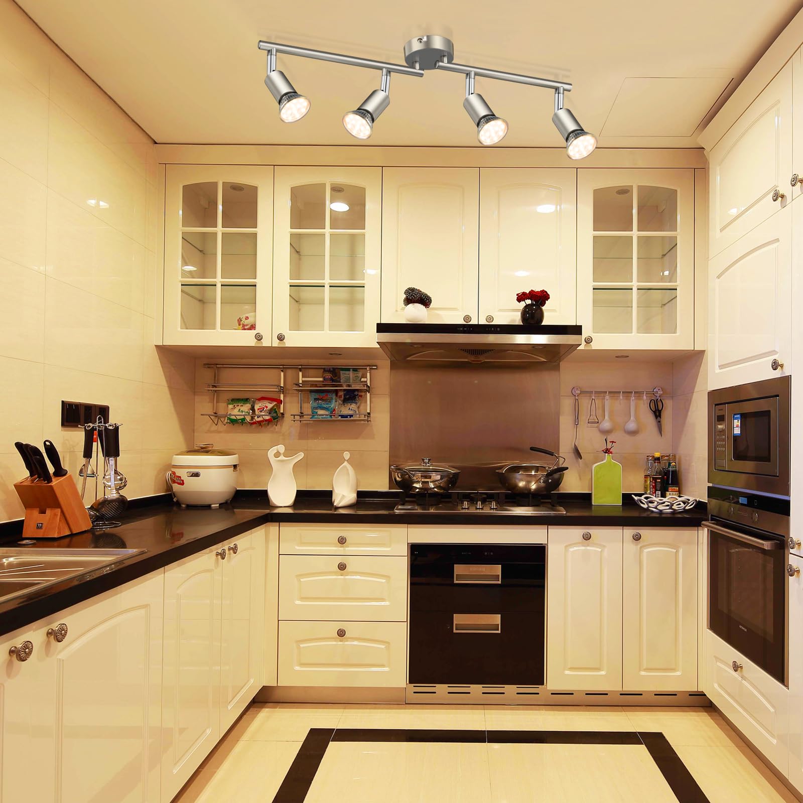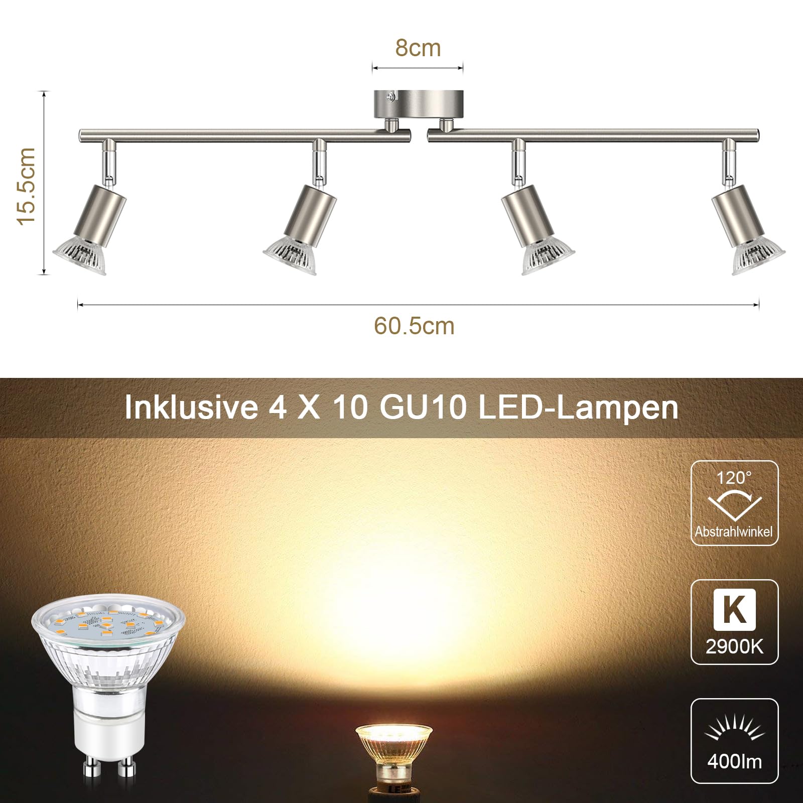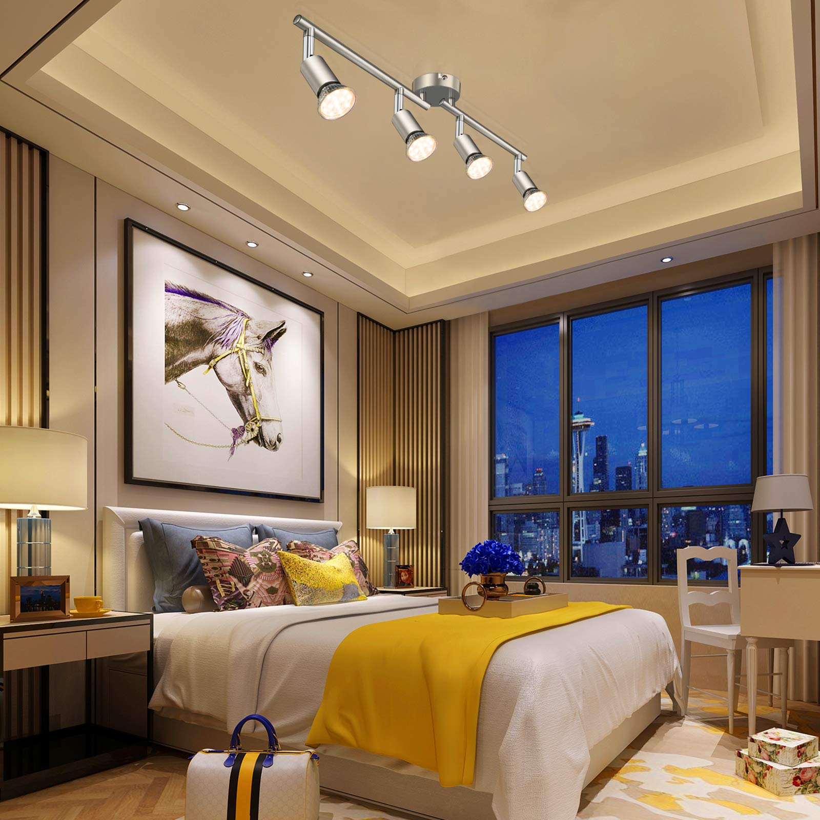 Defurhome LED Deckenleuchte Drehbar, 4 Flammig Strahler Deckenlampe Spot,Modern Deckenstrahler (Mattes Nickel) für Küche, Wohnzimmer, Schlafzimmer, inkl. 4 x 4W GU10 Lampen (400LM, warmweiss)