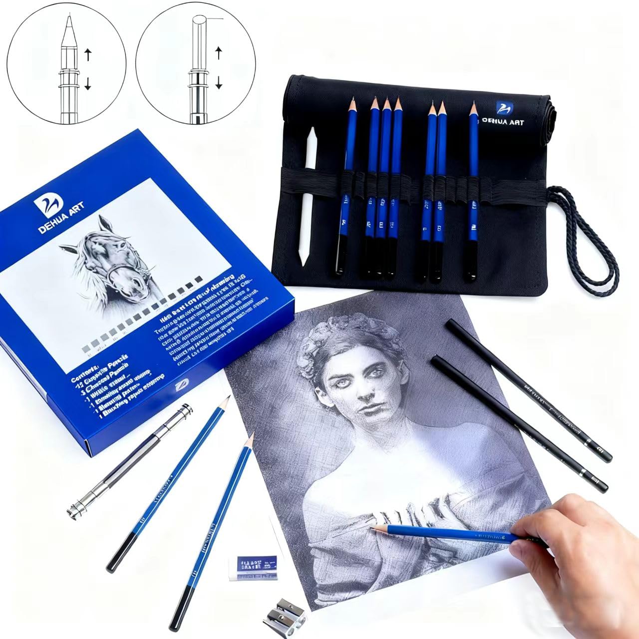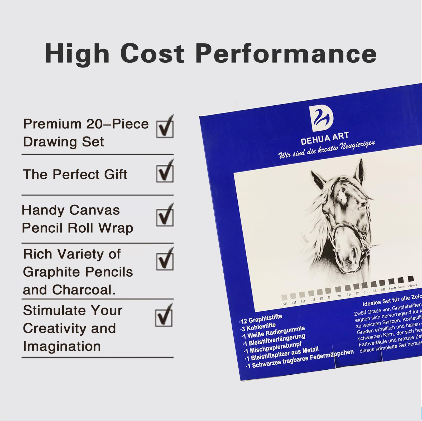 DEHUA ART Zeichenstifte und Skizzen-Set Professionelles 20-teiliges Zeichen mit tragbarer Tasche Skizzierstifte Zeichenkunst Werkzeug-Kit (Blau)