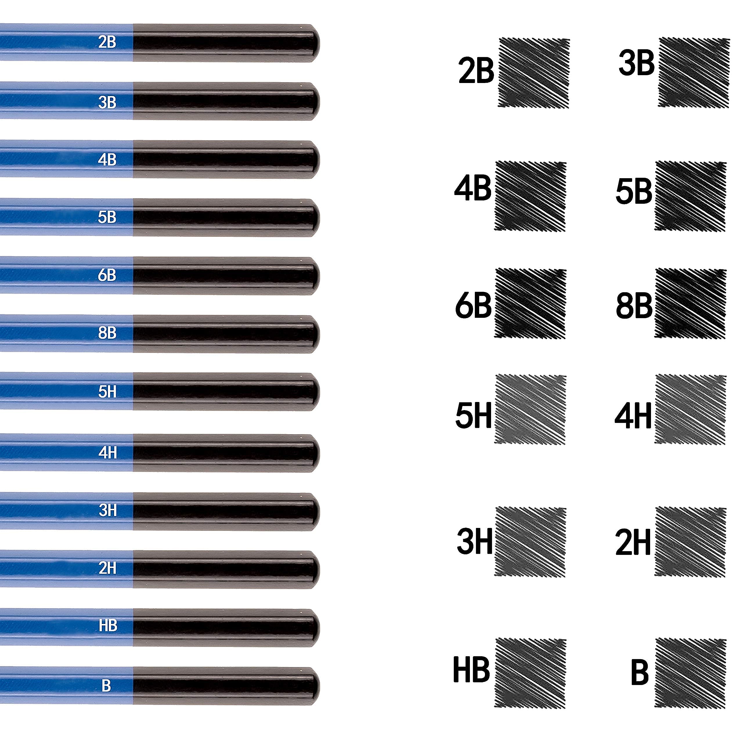• 【Wunderbares Zeichenstift-Set】Das Zeichenset enthält: 12 Zeichenstifte (5H 4H 3H 2H HB B 2B 3B 4B 5B 6B 8B), 1 Radiergummi, 1 Spitzer, 1 Bleistiftverlängerung, 1 tragbare Bleistifthülle, 1 Pinselschwamm, 3 Kohlestifte. Es ist für Anfänger und professionelle Künstler geeignet.