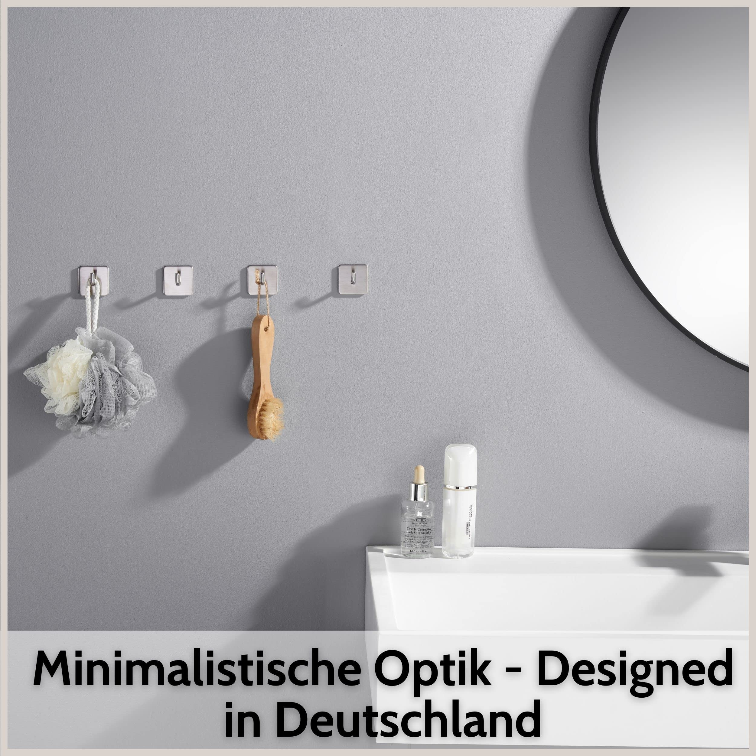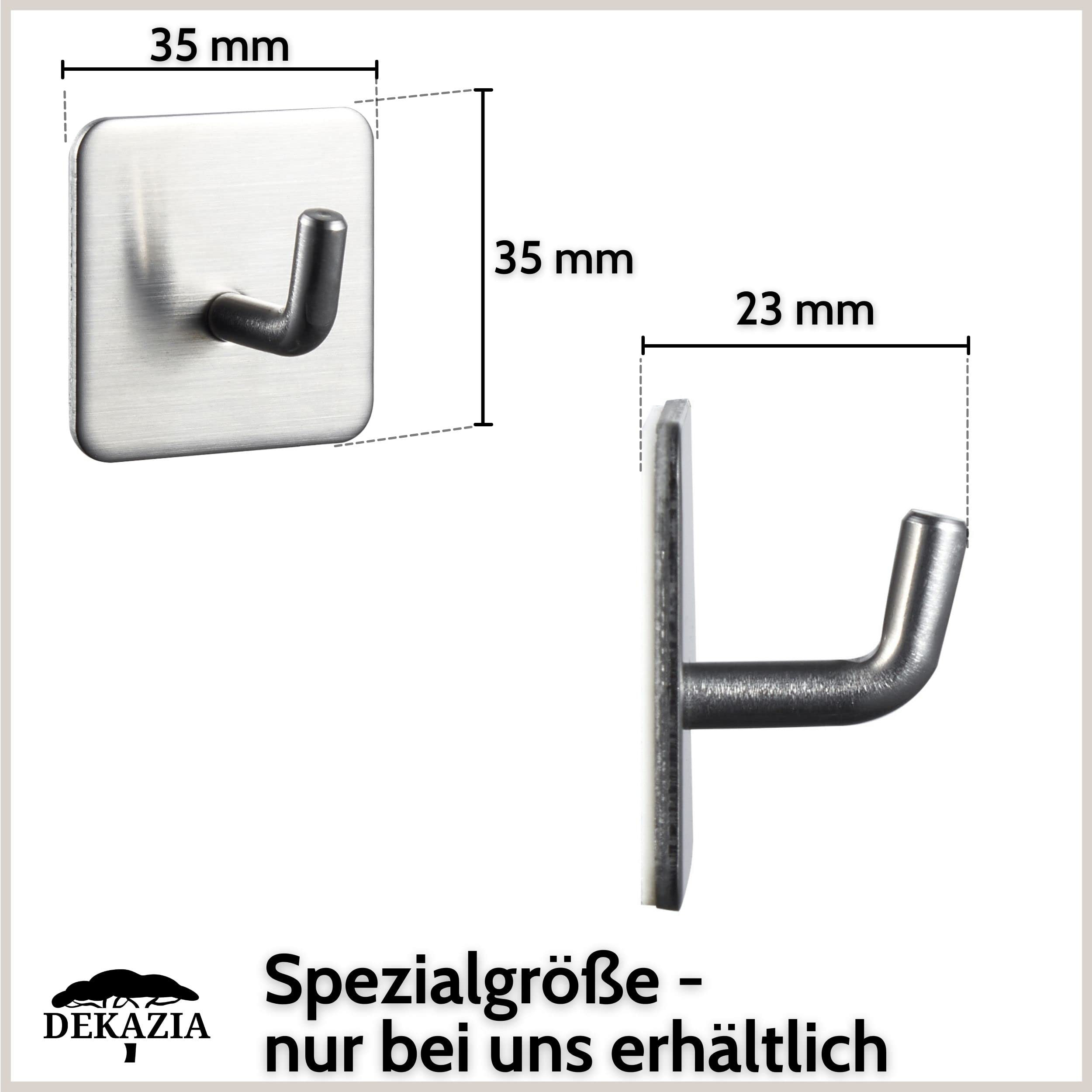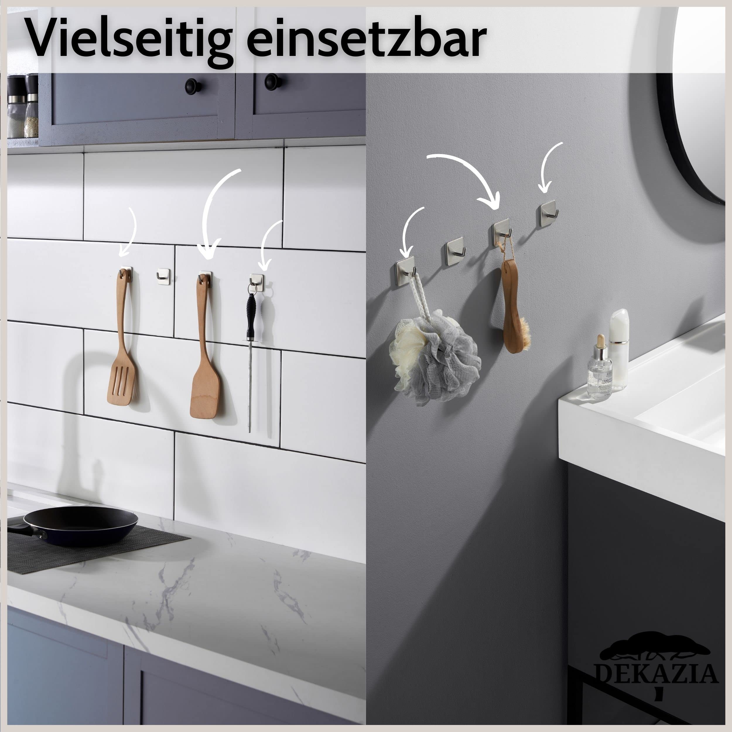 DEKAZIA Edelstahl Klebehaken, Extra Stark, Bad- und Küchenhandtuchhaken, Selbstklebend, 1kg Max. Gewicht, 4 Haken inklusive, gebürstetes Finish, modernes Design, Wandhalterung