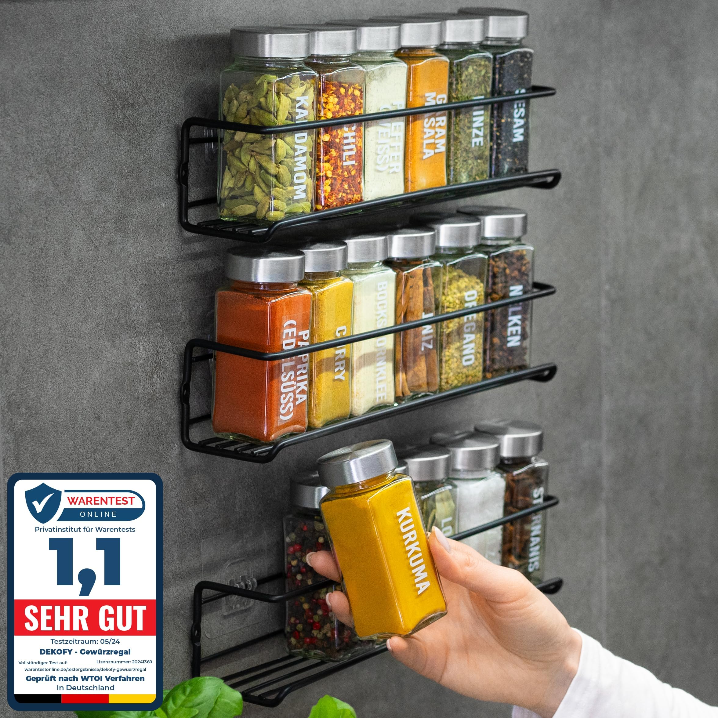 DEKOFY® Gewürzregal Mit 18 Gläsern - Zum Aufhängen für Wand & Schranktür - Ohne Bohren - Hängend, Gewürz Organizer