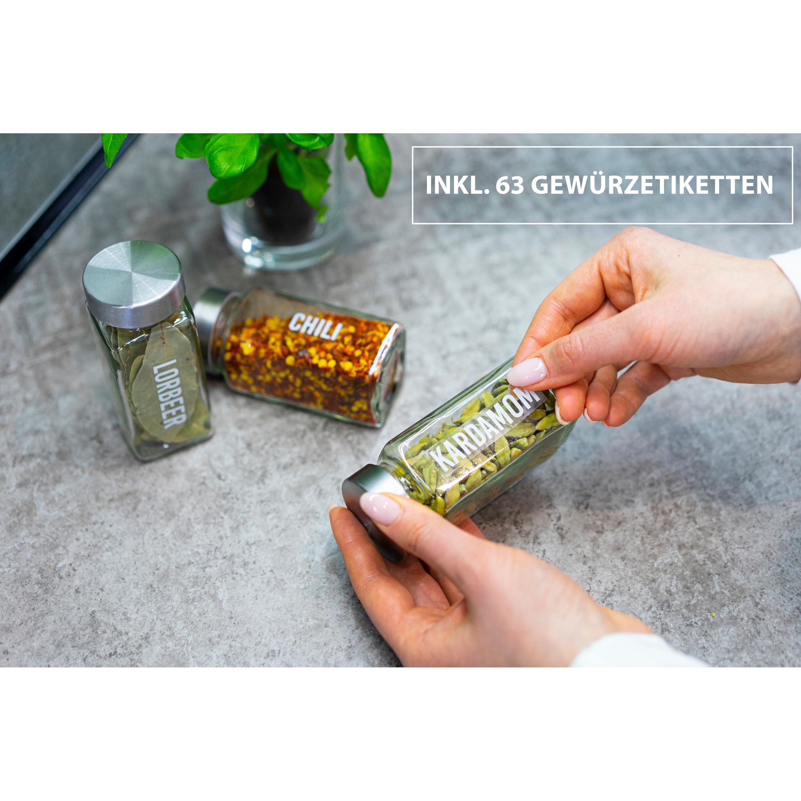 Gewürzregal mit Gläsern (Edelstahl-Deckel)