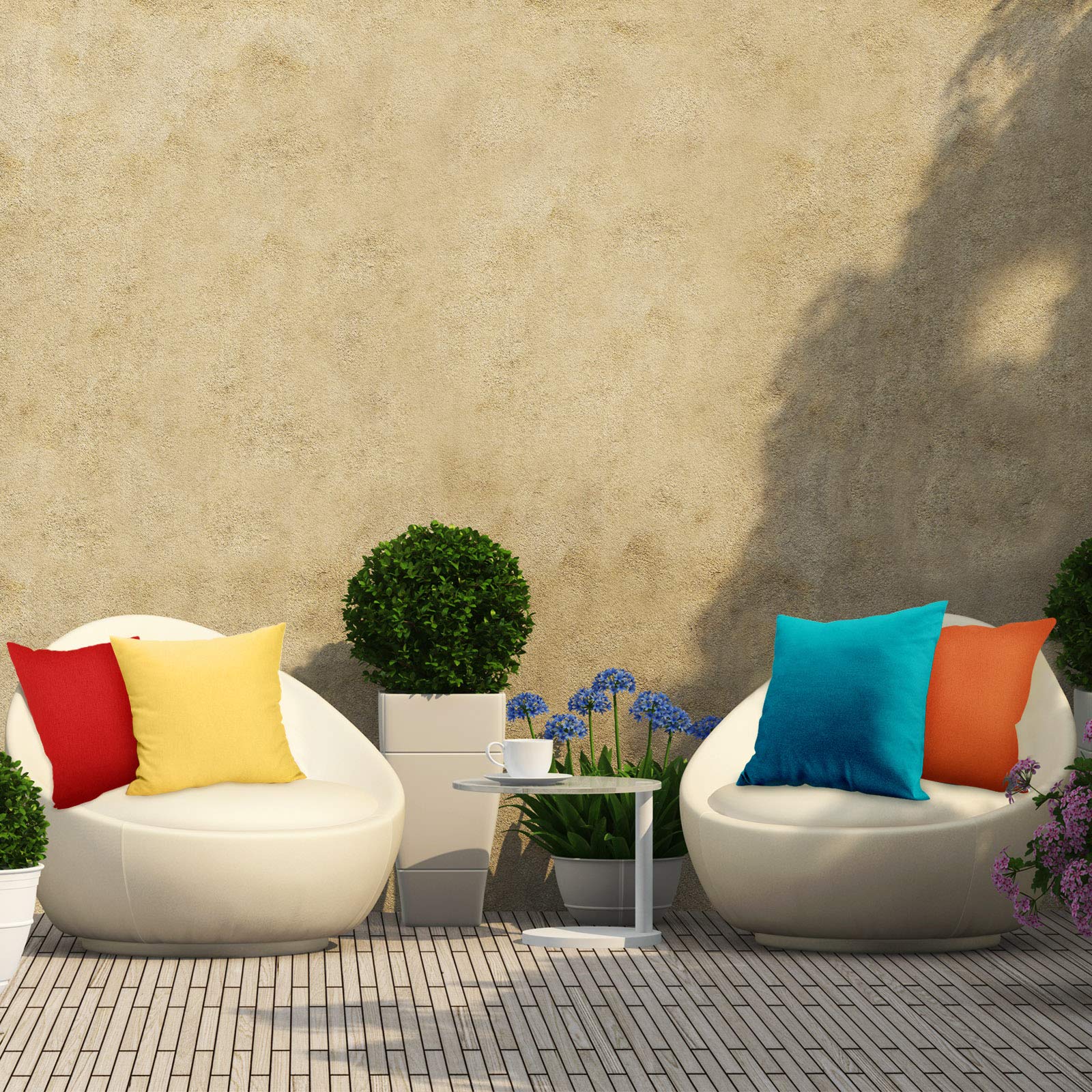 4 Stück dekorative wasserdichte Outdoor-Kissenbezüge, quadratisch, Terrasse, Balkon, Garten, wasserdichter Kissenbezug, PU-Beschichtung, Kissenhülle für Couch, Bett, Sofa, Zelt, 45,7 x cm (mehrfarbig)