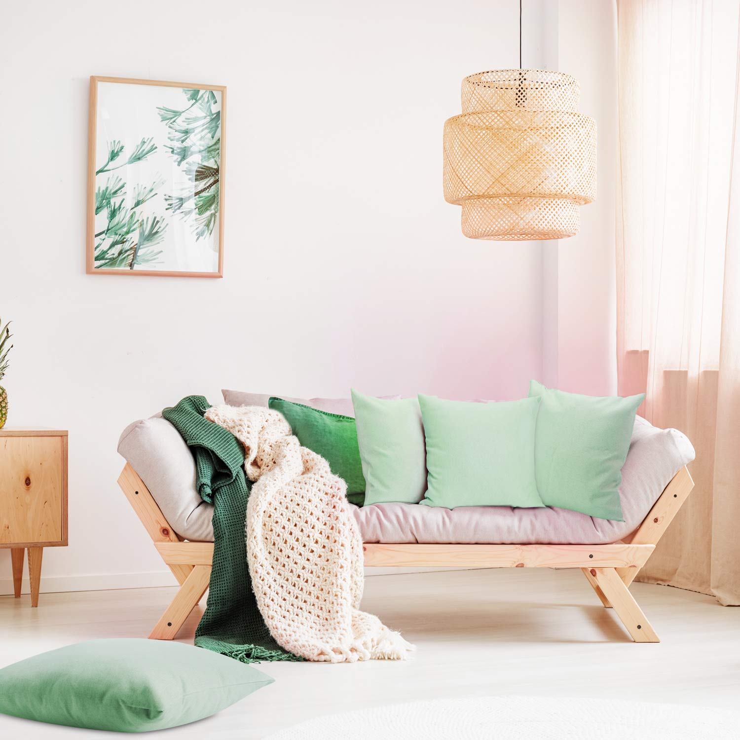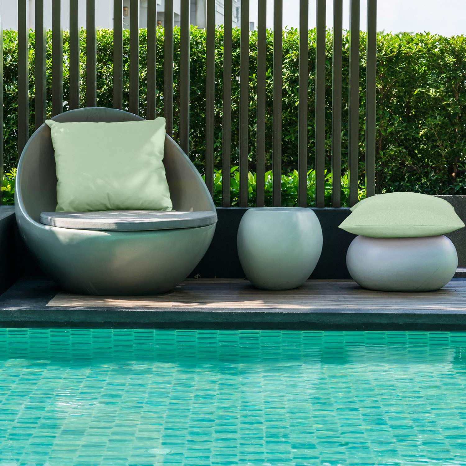 Diese hellgrünen Kissenbezüge sind sowohl für den Innen- als auch für den Aussenbereich geeignet, schützen die Kissen nicht auch vor Schmutz und Flecken, sondern sorgen auch für einen guten Dekorationseffekt.